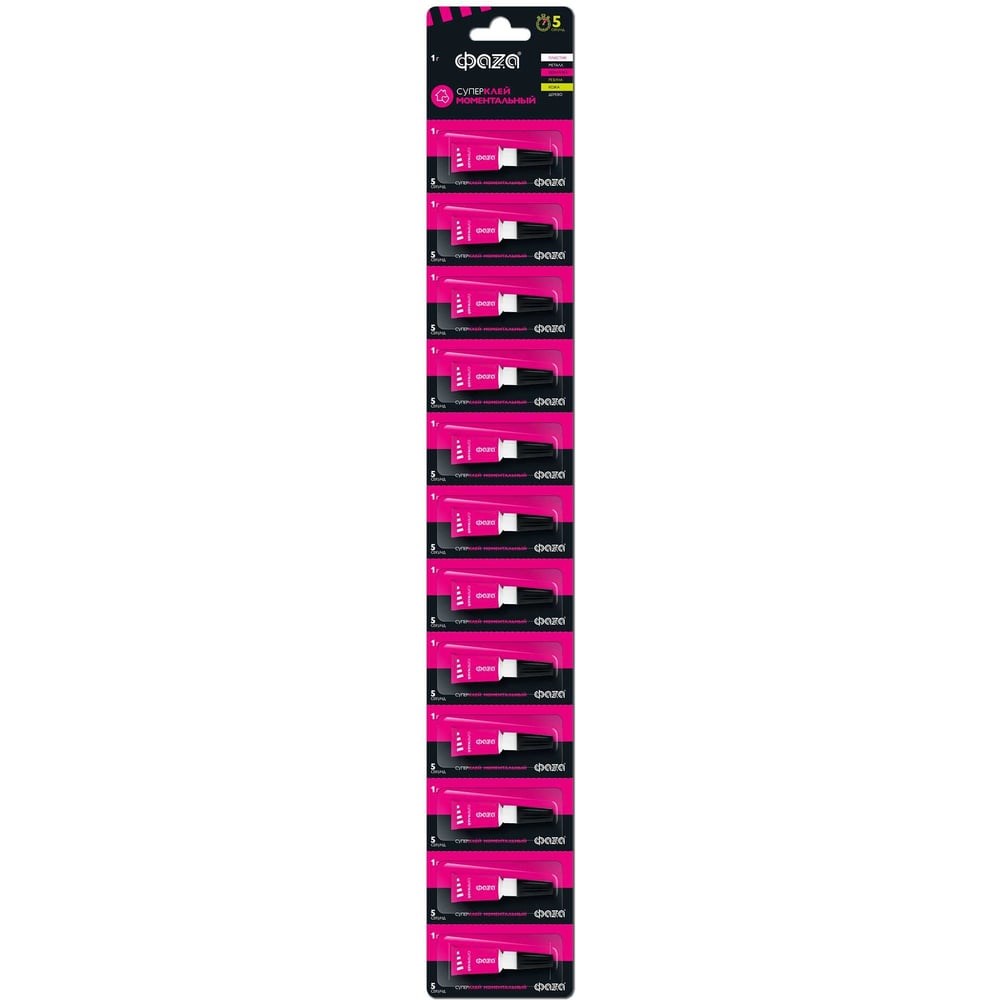 Суперклей моментальный ФАZA - это просто незаменимый помощник в быту! Его супер-концентрация сделает ваш ремонт максимально быстрым и качественным.Суперклей моментальный - идеальный выбор! Он прекрасно склеивает различные материалы, включая пластик, резину, стекло, текстиль, мебель, надувные матрасы, керамику, фарфор, дерево и металл. Суперклей схватывает в течение всего 5-30 секунд, что позволяет точно наносить клей на нужные участки без необходимости долгого высыхания. Удобный носик позволяет наносить клей даже на самые мелкие детали, обеспечивая точное проклеивание. Применение клея - простое и удобное. Вам не нужно быть профессионалом, чтобы успешно воспользоваться этим моментальным клеем. Просто нанесите его на нужные поверхности и сразу же прижмите их вместе - клей мгновенно начнет свою работу. Быстро и легко! Супер-клей прост в применении, вскрытие тюбика осуществляется простым доворотом колпачка. Еще один значимый плюс - многократное использование клея. Благодаря качественному колпачку клей можно использовать многократно, он не присыхает и остается готовым к использованию даже после длительного хранения. Вы экономите время и деньги, приобретая этот клей, так как используете его множество раз. Суперклей моментальный надежен и долговечен. Он выдерживает широкий диапазон температур, от -40°C до 70°C, что делает его идеальным выбором для использования в любых условиях. Клей остается прочным и надежным, сохраняя свою силу даже в самых экстремальных ситуациях.