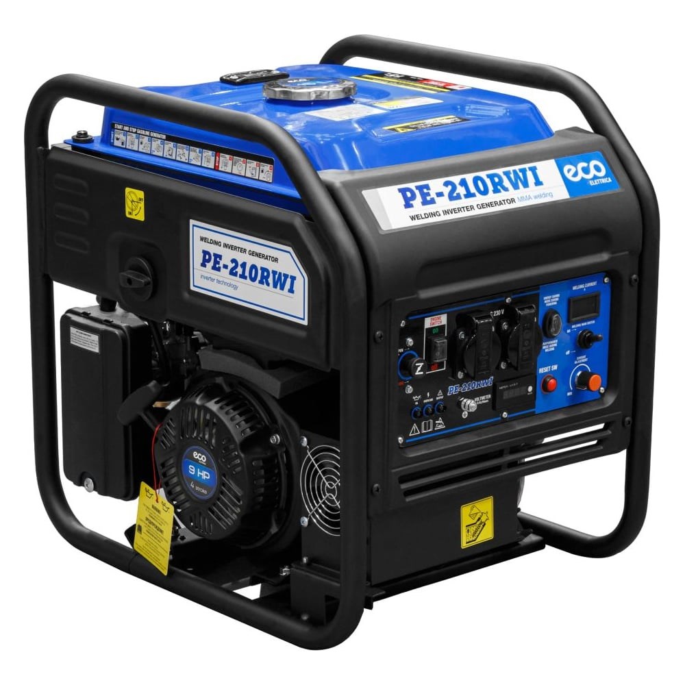 Внимание! Двигатель поставляется без масла! Рекомендуемое моторное масло - 10W-40. Инверторная сварочная электростанция ECO PE-210RWI предназначена для использования в качестве автономного источника ручной дуговой сварки или подключения электрооборудования. Бензиновая станция с функцией сварки представляет собой комбинированную электростанцию для сварки и энергоснабжения. Современный сварочный модуль позволяет выбрать силу тока в диапазоне от 20А до 210А. Электростанция оснащена двумя цифровыми дисплеями с отображением: напряжения, частоты тока, счетчиком моточасов и силы сварочного тока. Внимание! При подборе электростанции необходимо учитывать пусковые токи устройства-потребителя электроэнергии.