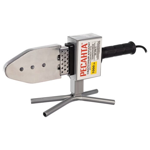 Этот аппарат используют для соединения полипропиленовых труб и фитингов. Мощность модели 1000 Вт дает возможность соединять детали без протечек в области шва. Аппаратом пользуются владельцы частных домов при оборудовании системы отопления. Он пригодится также на даче для организации водопровода. Будет незаменим и в квартирах, например, чтобы переделать разводку труб на кухне. Модель подходит для сварки труб диаметром от 20 до 63 мм. Форма нагревателя – мечевидная. На него устанавливаются парные сварочные насадки, что обеспечивает надежный тепловой контакт. В комплекте идет 6 пар насадок. Муфтовый тип сварки позволяет создавать монолитное соединение, устойчивое к вибрациям и статическим нагрузкам.