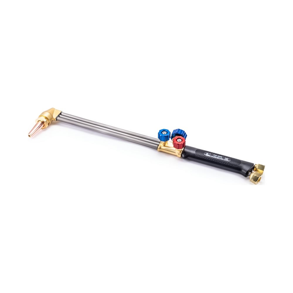 Универсальный резак предназначен для ручной разделительной резки листового и сортового металлопроката из низкоуглеродистых сталей толщиной до 300 мм. Резак обладает повышенной надежностью конструкции, которая достигается за счет штампованных латунных элементов резака. Резак может работать на пропане и ацетилене. Выбор газа зависит от установленных газосмесительных мундштуков. Мундштуки имеют три запорных пояска, которые предотвращают перетечку газов и обеспечивают смешение газов непосредственно в мундштуке, обеспечивая безопасное использование. Резак поставляется с разборным пропановым мундштуком №2PM. Давление газа на входе и расход зависит от установленного мундштука. В руководстве по эксплуатации указаны ориентировочные данные. Маркировка разборных пропановых/неразборных ацетиленовых мундштуков и толщина разрезаемого металла: №0PM/0А: 3-10 мм (приобретается отдельно); №1PM/1А: 8-15 мм (приобретается отдельно); №2PM/2А: 15-30 мм; №3PM/3А: 30-50 мм (приобретается отдельно); №4PM/4А: 50-100 мм (приобретается отдельно); №5PM/5А: 100-200 мм (приобретается отдельно); №6PM/6А: 200-300 мм (приобретается отдельно).