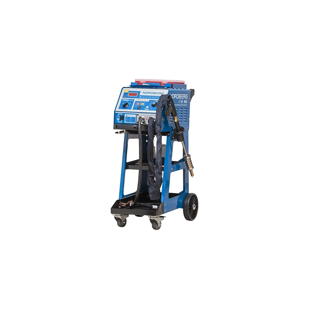 Сварочная установка для точечной сварки, споттерNORDBERGWS5.Дополнительные вакуумные устройства: 150 кгпоставляются отдельно.Однофазный электронный сварочный аппарат точечной сварки (споттер) с микропроцессорным управлением применяется в кузовных цехах авторемонтных предприятий.Ток сварки до 4000 А.Выходное напряжение:AC6V–10В Нагрев угольным электродом AC1V–12В Приварка шайб AC1V–13В Сваривание металлов