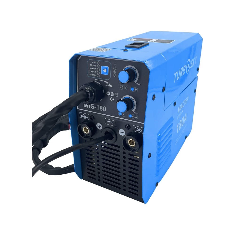 Turbosky MIG-180А Мастер - мощный и универсальный сварочный аппарат, предназначенный для эффективной работы как с газом, так и без него. С максимальным током 180 А, он идеально подходит для различных сварочных проектов. Turbosky MIG-180А Мастер - идеальный выбор для тех, кто ищет надежный и производительный сварочный аппарат для разнообразных сварочных задач.