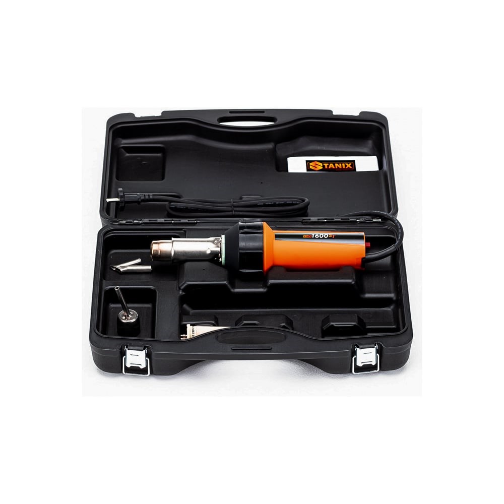 Универсальный прибор для локального разогрева и термической обработки. Отличается компактностью, малым весом, сбалансированной конструкцией, отсутствием вибрации, низким уровнем шума и удобным хватом.Высокие мощность и температура воздуха позволяют решать самые разные задачи. Оснащен регулятором температуры, расположенным на тыльной стороне.Корпус с термозащитным кожухом несъемного типа выполнен из пластика, это позволяет оператору избежать ожогов.Эффективная защита прибора от перегрева, двойная изоляция и съемные воздушные фильтры гарантируют бесперебойную работу при сварке мембран практически в любых условиях.На корпусе предусмотрена подставка в виде резиновой ножки, которая позволяет безопасно размещать инструмент.Достаточно длинный электрический шнур дает возможность беспрепятственно работать даже на участках, удаленных от источника питания.