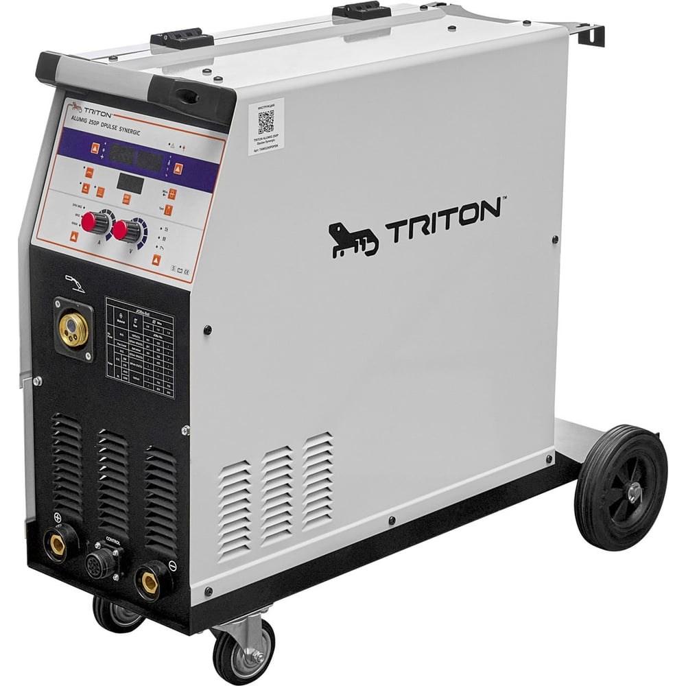 Универсальный сварочный полуавтомат с двойным пульсом TRITON ALUMIG 250P DPULSE SYNERGIC 380v предназначен для сварки в режимах MIG/MAG PULSE и MMA. Инвертор подходит для сварки алюминия (чистого и сплавов), стали. Двойной импульсный режим, реализованный в аппарате, позволяет сваривать заготовки с более высоким качеством соединения, чем при использовании классической полуавтоматической сварки.Импульсный и двойной импульсный режим сваркиВ MIG режиме в аппарате доступна сварка в режимах Pulse (обычный импульсный) и Double Pulse (двойной импульсный). Оба режима предназначены для повышенного контроля за тепловложением в заготовку и необходимы для качественной сварки алюминия.Синергетические настройки и JOB LISTОдна из важных профессиональных функций аппарата - синергетические настройки для сварки, которые автоматически выставляются выбранной в Job List задачей. Сварщик выбирает номер настройки в соответствии с типом и диаметром присадочной проволоки и используемого газа.