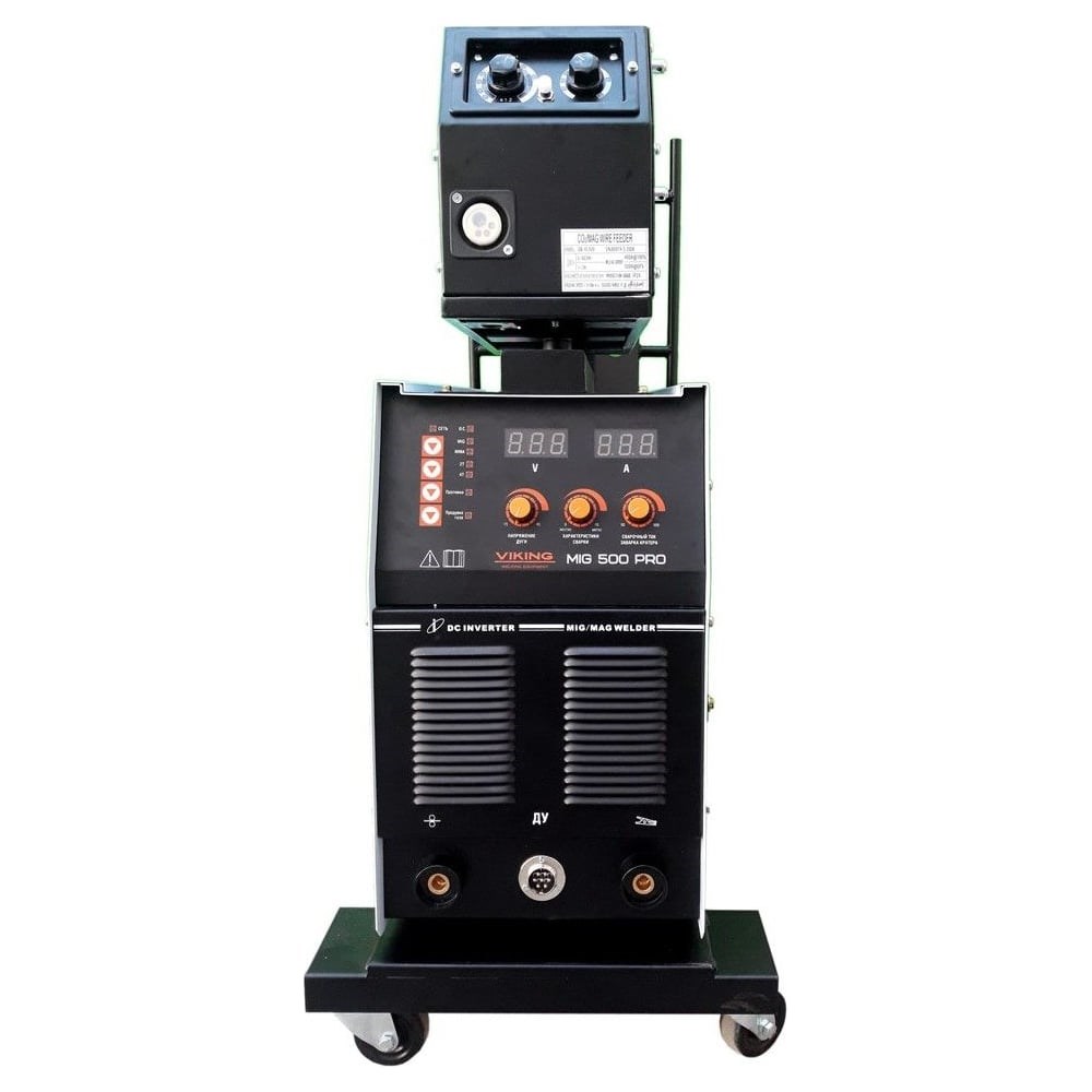 Многофункциональный сварочный полуавтомат VIKING MIG 500 DP PRO, основу которого составляют мощные IGBT транзисторы, работающий в режимах CO2/MAG/MIG предназначен для профессионального использования. Совместно с цифровыми системами механизмов подачи проволоки, они могут: Обеспечить несколько интеллектуальных методов контроля процесса сварки, включая сварку постоянным током, одноимпульсный и вариант двухимпульсный на основе управления сварочным током и напряжением в режиме реального времени. Сваривать различные материалы, такие как, углеродистая сталь, нержавеющая сталь и сплавы алюминия. Использовать специальные сварочные средства контроля. Работать с автоматизированным оборудованием, включая роботы. Оснащаться транспортной тележкой для достижения более высокой мобильности. Оснащаться системой жидкостного охлаждения сварочной горелки.