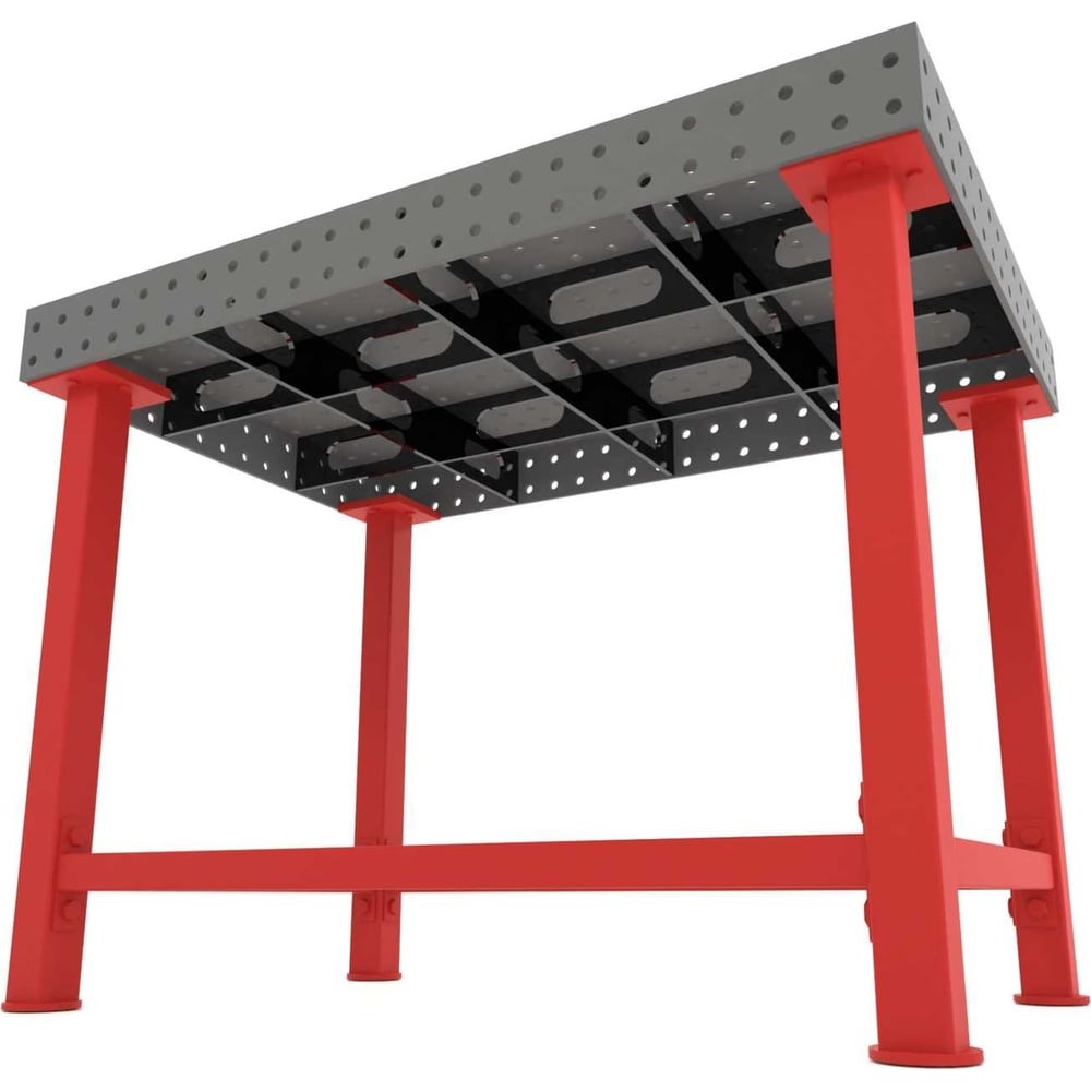 Поставляется в собранном виде с комплектом опор, высота опоры: 850-910 мм. Столы могут использоваться для ручной и роботизированной сварки. Используется сталь 09Г2С – стол получается более прочный, жесткий, долговечный, устойчивый к коррозии и нагрузкам. Механические свойства стали 09Г2С на 30% лучше, чем стали СТ3. Шаг координатной сетки: 50 мм дает оптимальную точность, возможность точно фиксировать детали на столе и возможность варить широкий спектр изделий от мелких до крупных деталей. Плоскостность 0,5-1 мм на погонный метр дает оптимальную точность и стабильную повторяемость изделий, минимальный процент брака. 4-14 ребер жесткости (в зависимости от размера стола) дают улучшенную жесткость стола, стол не ведет, снижение деформации поверхности, стол выдерживает большие механические и термические нагрузки. Точность регулировок опор стола – 1 мм, высота фиксируется регулировочным винтом. Столешницы обработаны антипригарной жидкостью. Изделия не прилипают при сварке, увеличивается скорость работы сварщика, стол более защищен от прилипания окалины и расплавленного металла. Максимально разрешенная статичная нагрузка до 2000 кг. Добавочные плиты и соединительные блоки дают возможность стыковать несколько сварочных столов в систему для сборки крупногабаритных и массивных изделий. Лазерная обработка отверстий для оснастки + дополнительная механическая обработка отверстий.