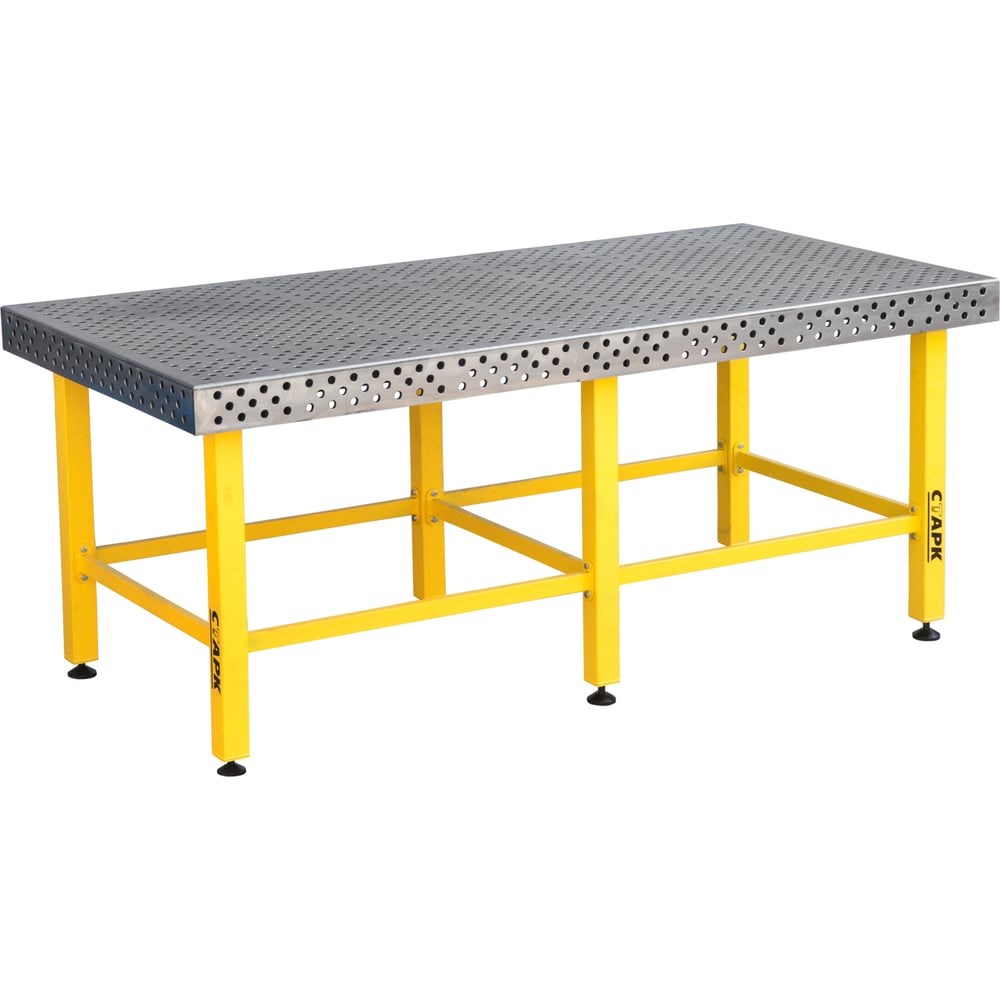 Сварочный стол СТАРК-ПРОФИ изготовлен из конструкционной холодноформуемой стали, которая отличается высокой прочностью и стойкостью к нагрузкам. Столешница предназначена для установки на специальные опоры, которые подбираются отдельно по высоте в зависимости от типа работ.