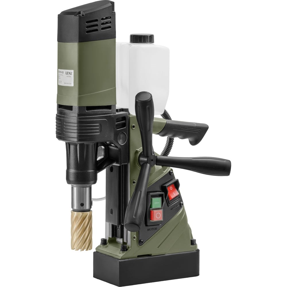Магнитный сверлильный станок LENZ STEYR-35 служит для получения отверстий диаметром до 35 мм и глубиной до 50 мм в металлических заготовках. Благодаря магнитному основанию с прижимной силой 10000 Н аппарат прочно фиксируется на рабочем месте, что способствует высокой точности выполняемых операций. Оборудование оснащено системой охлаждения, которая подает жидкость на область сверления для защиты от перегрева.