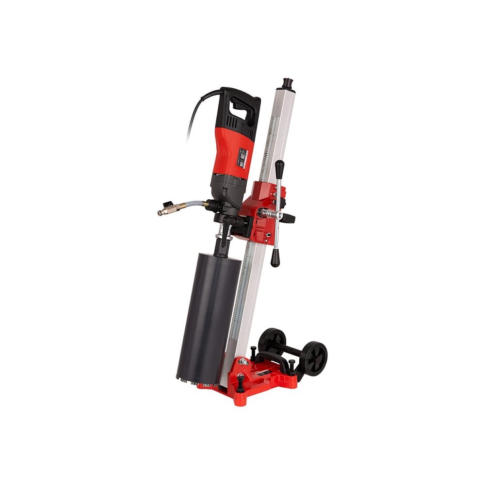 Комплект: ручная сверлильная машина арт.620088 + наклонная стойкаарт. 620078 + зажимное кольцо арт.620090. Мощная двухскоростная сверлильная машина с функцией сверления с микроударом. Применяется для мокрого и сухого сверления сквозных и глухих отверстий в бетоне, железобетоне, кирпичной кладке и других строительных материалах. Оснащена функцией LED CONTROL - это индикаторы с помощью которых оператору легче контролировать условия работы, тем самым сводить на минимум перегрузку машины. Электрический двигатель оснащен функцией мягкий старт и электронной защитой от перегрузки. Так же машина имеет защитную механическую муфту для защиты оператора и электродвигателя. На электрическом кабеле машины есть защита PRCD для защиты оператора от удара электрическим током (заземление обязательно).Длина кабеля 3 метра