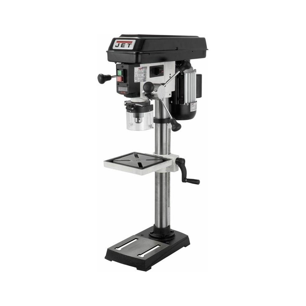 Сверлильный станок JET JWDP-10 10000083M представляет собой настольное вертикальное оборудование, предназначенное для работы в небольших мастерских с деревом и другими материалами. К отличительным особенностям данной модели относят наличие цифрового дисплея, простое управление и наличие лазера.. Механизм подачи пиноли имеет круговую шкалу с миллиметровой разметкой (лимб), который совмещён с ограничителем глубины сверления. Рабочий стол станка оснащён регулировкой по высоте и по углу наклона на 45 градусов, а также может поворачиваться вместе с кронштейном вокруг колонны. Станок подходит как для бытового, так и для профессионального использования. Выходная мощность - 370 Вт. Угол наклона рабочего стола -45-0-45°. Максимальная нагрузка на стол - 25 градусов. Ключевой патрон 1,5-13 мм.