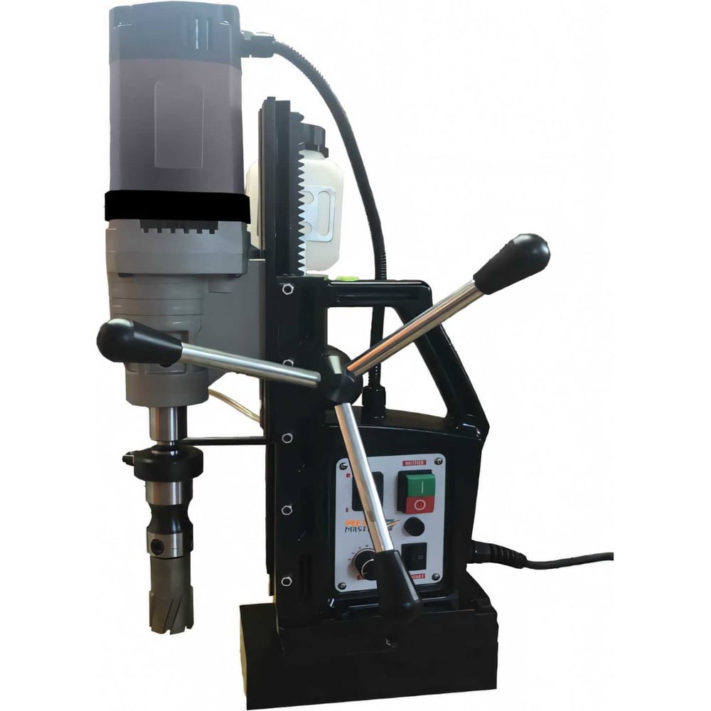 Сверлильный станок на магнитном основании METALMASTER MDM-45R 19997 предназначен для обработки резанием заготовок из конструкционных материалов (сталей, чугунов, сплавов цветных металлов). Применяется для сверления и рассверливания отверстий в труднодоступных местах, экстремальных и полевых условиях. Конструктивной особенностью данного класса станков является электромагнитное основание необходимое для надёжной фиксации станка на заготовке в различных положениях (в том числе горизонтальном и перевернутом). Станок оснащен функцией реверса.