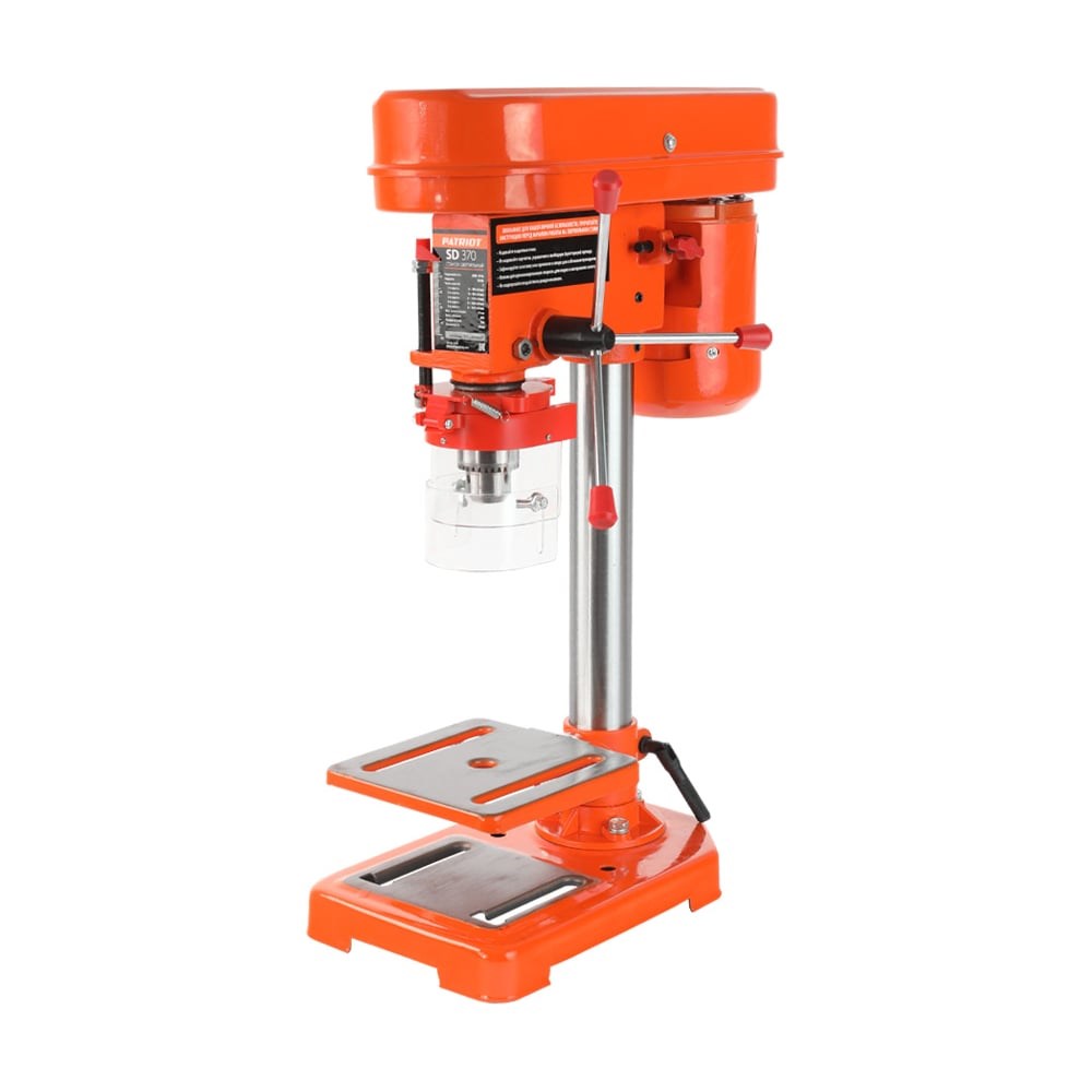 Сверлильный станок PATRIOT SD 370 160301370 используется в столярном производстве или в частных мастерских для сверления отверстий в металле или древесине. Рабочий стол выполнен из чугуна, который отличается высокой прочностью и износостойкостью. Вращающаяся рукоять позволяет регулировать высоту рабочего стола, что обеспечивает удобство в работе. Экономичный электродвигатель и ременная передача с 5 ступенями обеспечивают оптимальный подход к обработке.