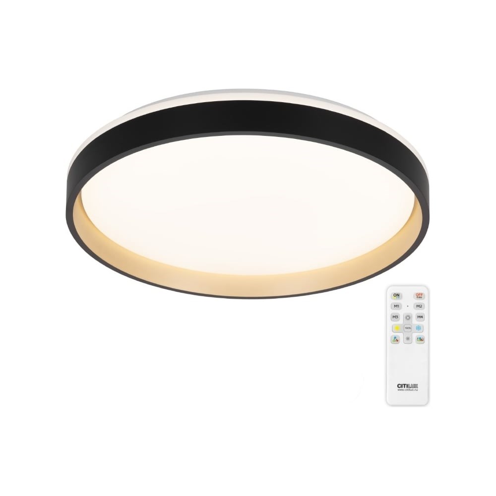 Светодиодный потолочный светильник Citilux ENZO CL753451G с яркой цветной RGB подсветкой выполнен в современно стиле. Основание металлическое. Плафон круглой формы из прочного полимера черного цвета с золотой декоративной окантовкой и рассеивателем из оптического полимера. Благодаря оригинальной конструкции, светильник равномерно освещает помещение и дополнительно подсвечивает потолок, что придает пространству дополнительный объём.Мощность изделия 68Вт, световой поток 5800Лм. С помощью пульта дистанционного управления пользователь может плавно регулировать яркость 10% - 100%, менять цветовую температуру в диапазоне 3000K - 5500K, что позволяет настроить любые оттенки теплого, нейтрального или холодного света. Цветная многорежимная RGB подсветка может наполнить пространство яркими и насыщенными цветами. Функция таймера и 4 настраиваемых режима памяти позволяют управлять светильником максимально комфортно.Накладной светильник подходит для всех видов потолков, в том числе натяжных. Тип крепления - через основание. Изделие комплектуется инфракрасным пультом ДУ. Для питания пульта применяются 2 батарейки формата ААА, напряжением 1,5V (не входят в комплект).Плоский потолочный светильник Ситилюкс ENZO CL753451G станет стильным дополнением для интерьера квартиры, студии, загородного дома или дачи. Легко обеспечит мягкое и равномерное освещение таких помещений, как гостиная, спальня, столовая, кухня или рабочий кабинет.