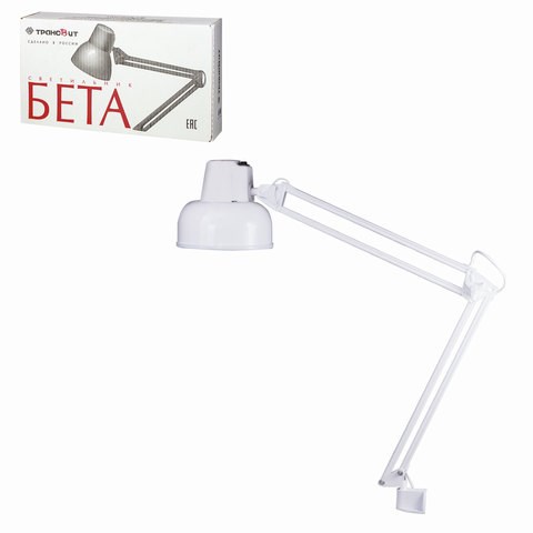 Настольная лампа светильник Бета на струбцине, цоколь Е27, белый