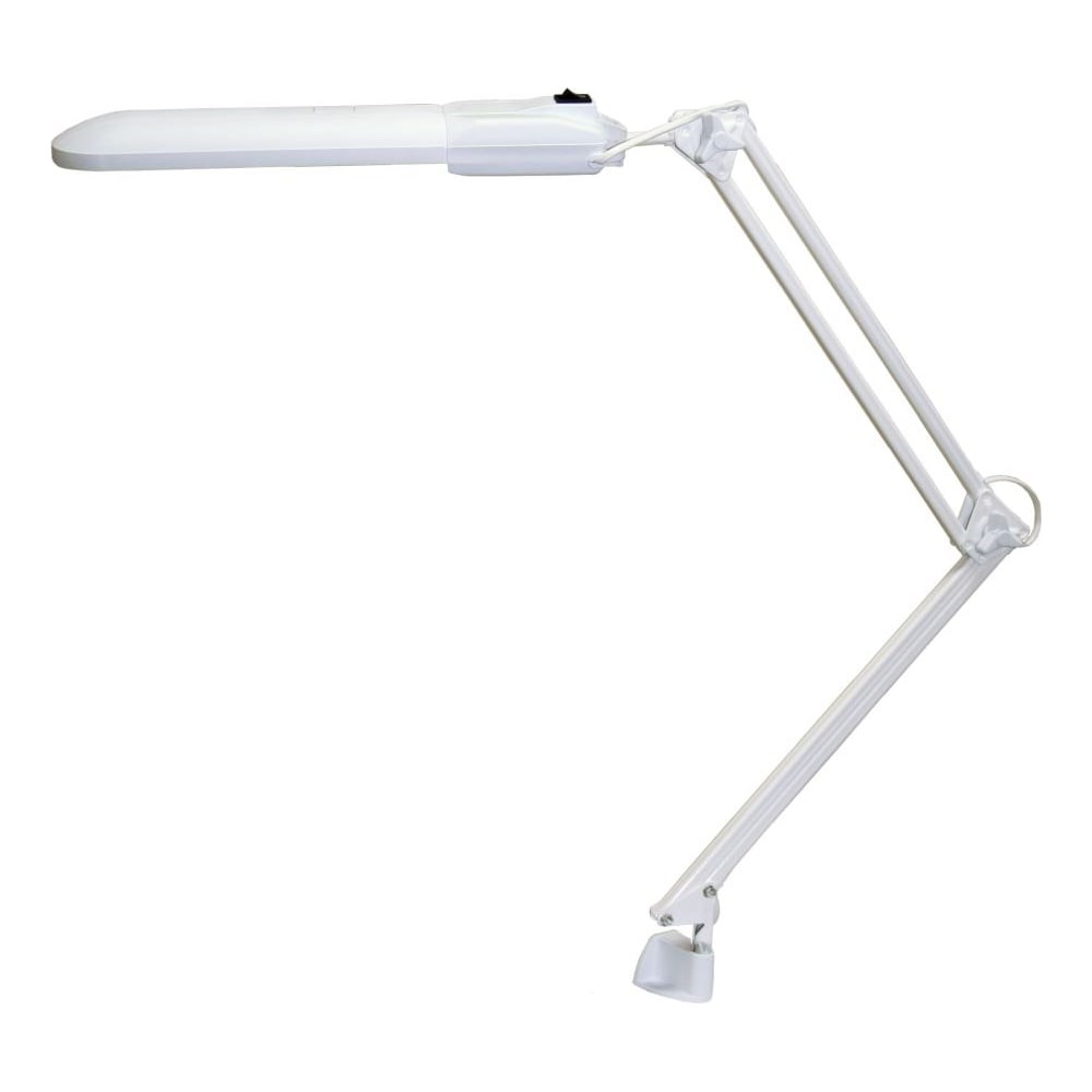 Светильник Дельта (с ЭПРА) на пластиковой струбцине, с люминесцентной лампой с цоколем 2G7 мощностью 11Вт (в комплекте), цвет - белый. Выключатель кнопочный на плафоне. Подходит для использования в жилых помещениях и учебных заведениях, в офисах, а также в медицинских учреждениях и пр.