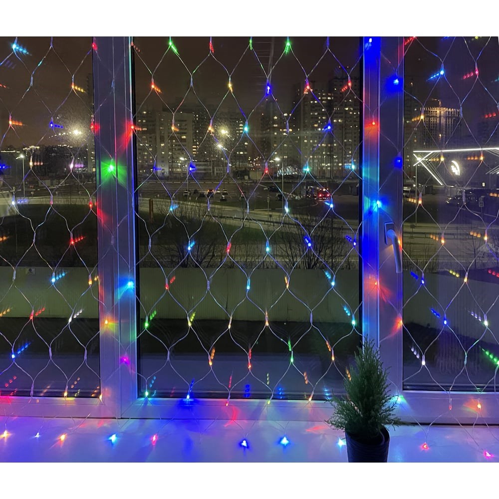 Гирлянда LED ЭРА ENIS01R сеть, 1,8 м х 1,5 м, RGB 8 режимов, 220V, IP20 Б0041902 создает интересный световой рисунок и делает свет гирлянды более глубоким и разнообразным.