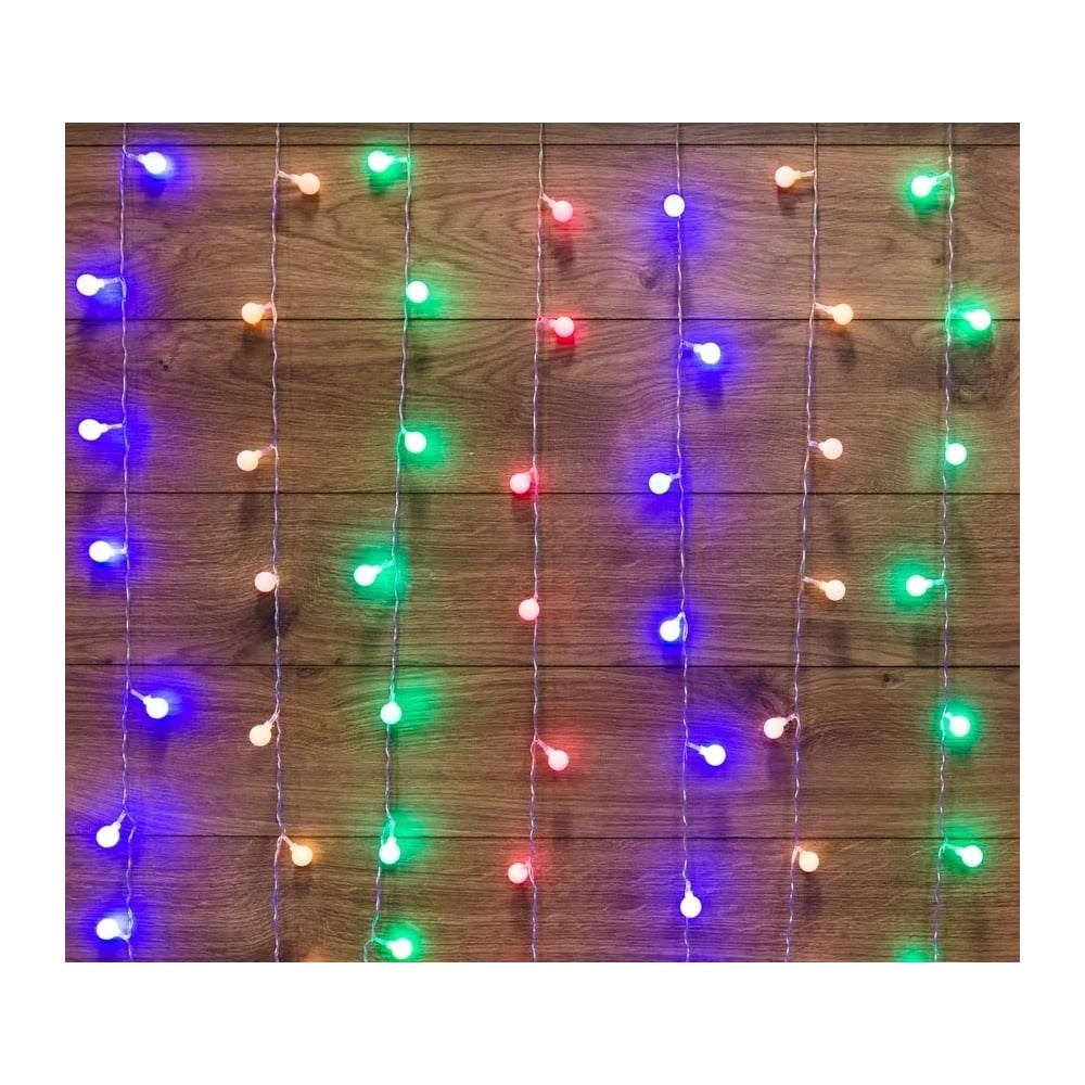 Светодиодная гирлянда NEON-NIGHT Дождь с насадками 8 режимов 1.5х1.5 м 144LED мультиколор 235-049 выполнена в виде занавеса на основе провода из прозрачного ПВХ. Украшение отлично подходит для оформления окон, стен, отдельных интерьерных объектов, ниш и свободного пространства между помещениями. 144 светодиода искрятся яркими разноцветными огнями. Степень защиты изделия IP20 подходит для использования только внутри помещения. Гирлянда подключается в электросеть 230 В при помощи шнура питания длиной 3 метра.