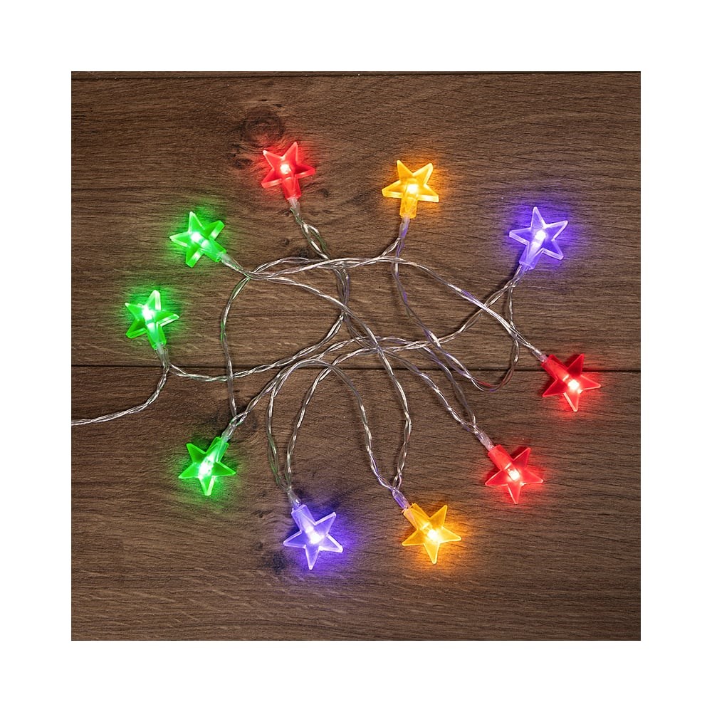 Светодиодная гирлянда NEON-NIGHT Звездочки 1.5м, 10LED, цвет свечения мультиколор 2хАА 303-090 − оригинальное и эффектное украшение, которое подойдет для оформления как новогодней ели, так и отдельных предметов интерьера: гардин, ваз, скульптур, элементов мебели.Насадки, в виде матовых разноцветных звездочек, расположены по всей длине провода и подсвечиваются 10 разноцветными диодами, питающимися от двух батареек типа АА. (Звездочки прозрачные, диоды цветные)Гирлянда выполняет роль акцентной подсветки в отапливаемых помещениях со стандартными условиями влажности и температуры.