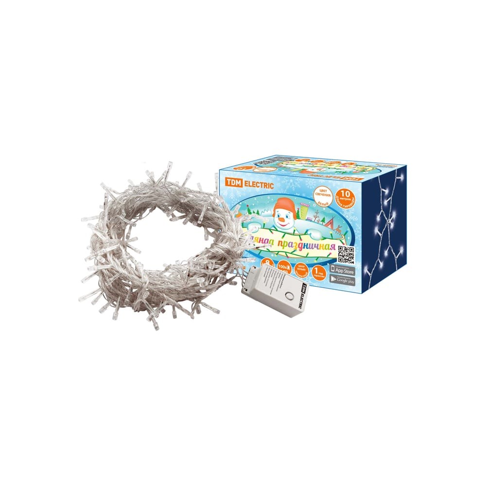 Светодиодная гирлянда TDM ELECTRIC СГ100Б10, белая, 10м, 8 режимов, 250 В SQ0361-0039