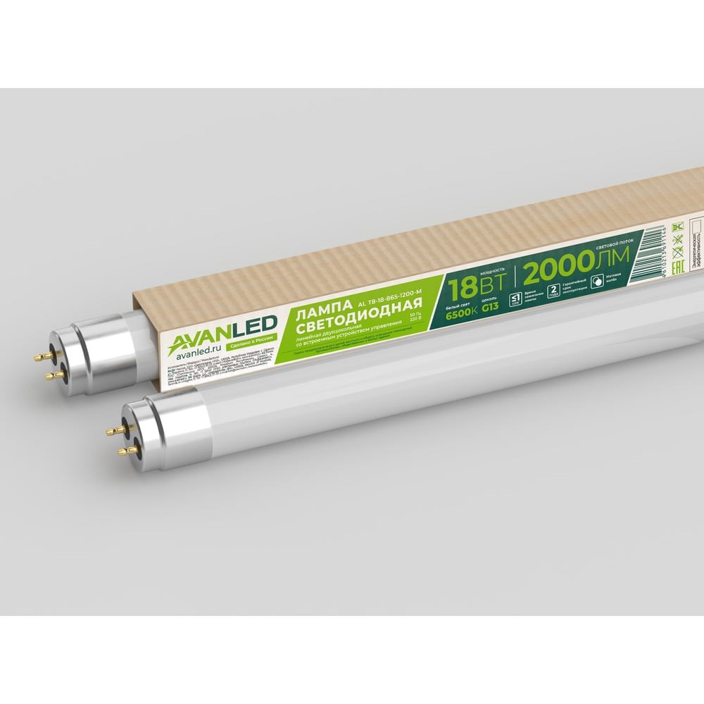 Светодиодная лампа AVANLED AL Т8-18-840-1200-М 11112401 используется для установки в светильники, предназначенные для освещения офисно-административных зданий, производственных и торговых помещений. Продукция предназначена как для замены люминесцентных ламп в соответствующих светильниках (с изменением схемы подключения), так и для установки в новые световые приборы. Колба лампы выполнена из матового светотехнического стекла. Используемые в лампах AVANLED светодиоды позволяют достигать световой отдачи 110 Лм/Вт.