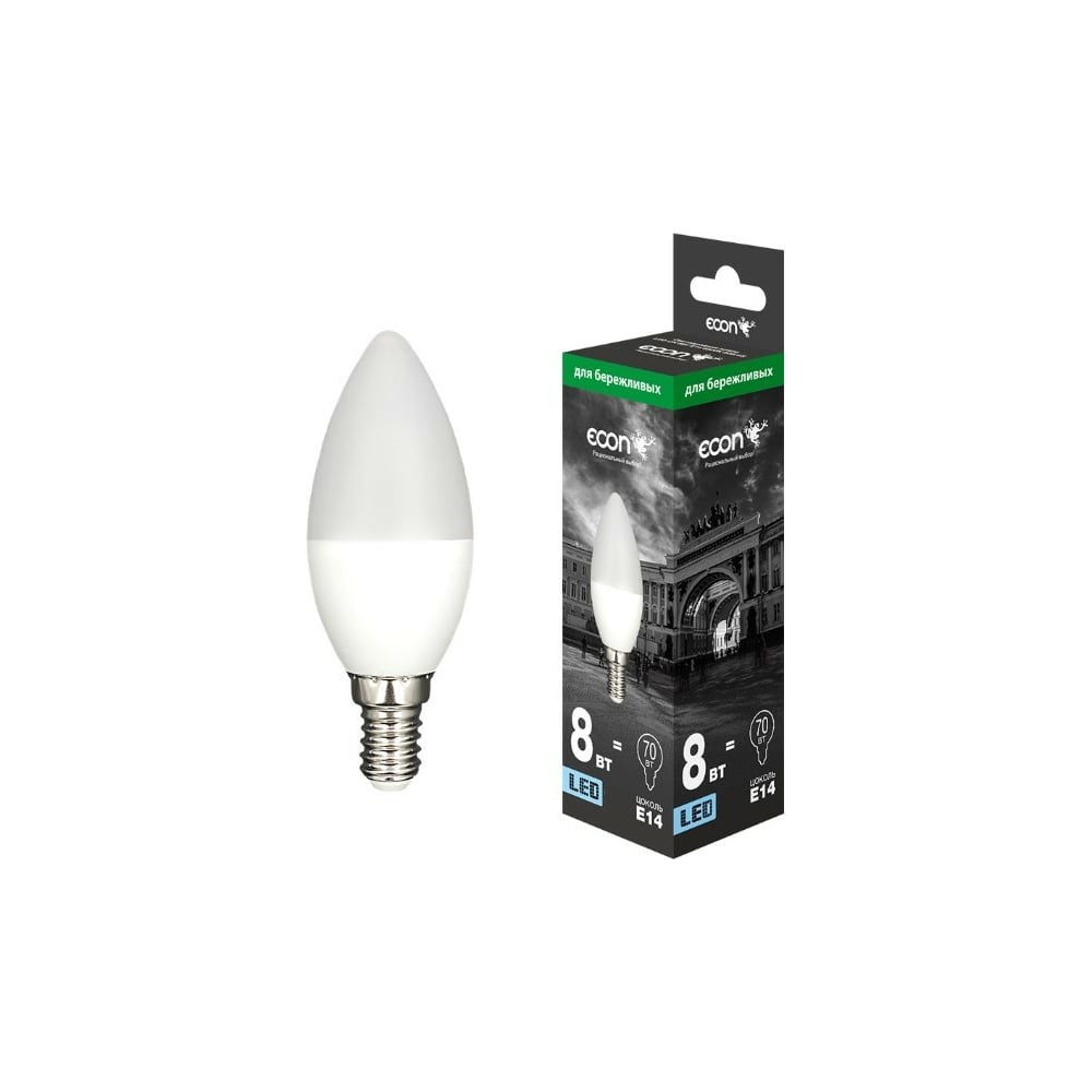 Светодиодная лампа ECON LED CN 8Вт E14 6500K B35 ES 728012