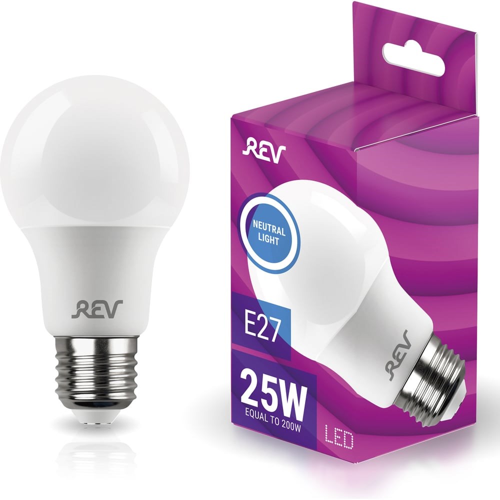 Светодиодная лампа LED A60 Е27 25W, 4000K, нейтральный свет 32533 8 является надежным, долговечным и экономичным осветительным элементом, который имеет стандартный цоколь и матовую поверхность колбы. Станет идеальным вариантом для эксплуатации совместно с настольными или настенными светильниками.Светодиодные лампочки — современный источник света, идеально подходящий для освещения витрин, интерьеров, декоративной подсветки. Они характеризуются низкой температурой нагрева, что позволяет использовать их в декоративных светильниках. Срок службы светодиодной лампочки до 30 раз дольше срока службы лампы накаливания. Уровень энергопотребления в 10 раз ниже по сравнению с аналогичными по световой отдаче лампами накаливания. В набор входит 1 светодиодная лампочка REV.