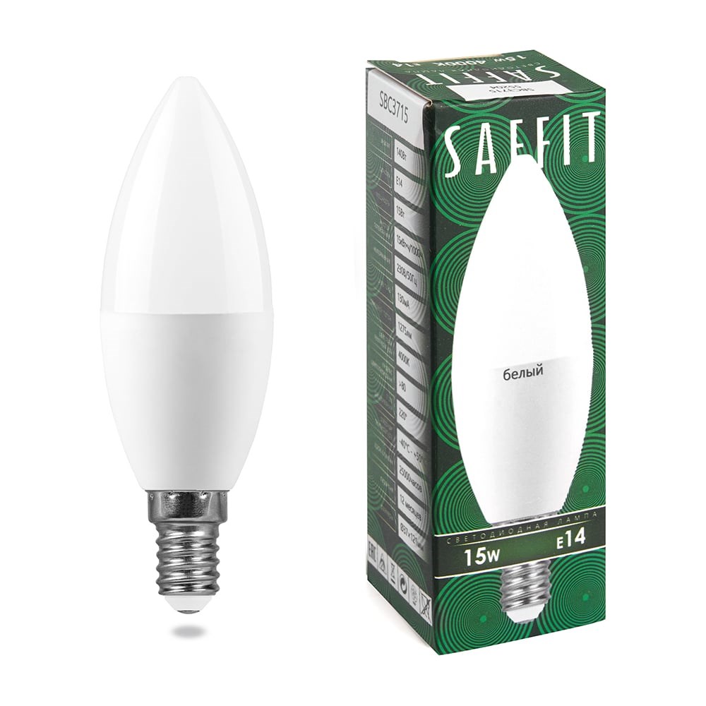 Светодиодная лампа SAFFIT SBC3715 Свеча E14 15W 4000K, 55204