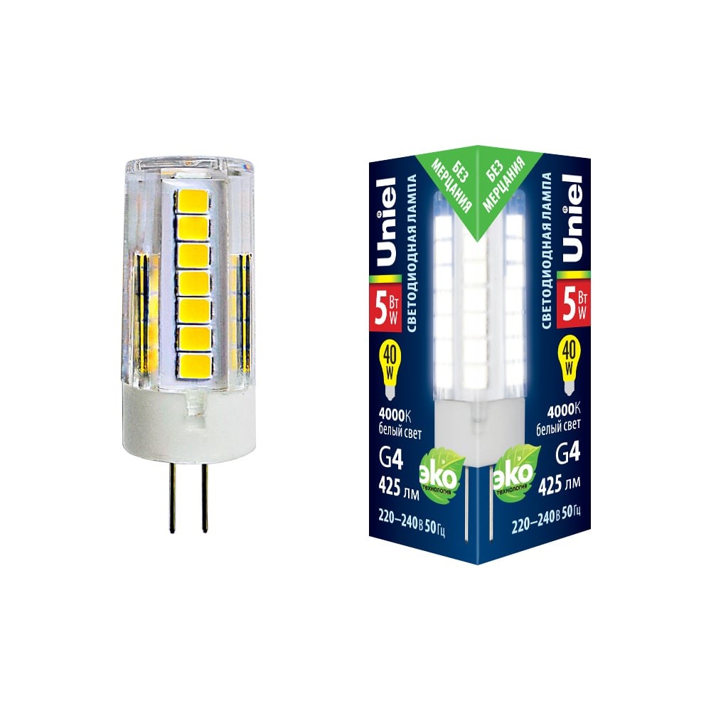 Светодиодная лампа Uniel LED-JC-220/5W/4000K/G4/CL GLZ09TR прозрачная UL-00006745