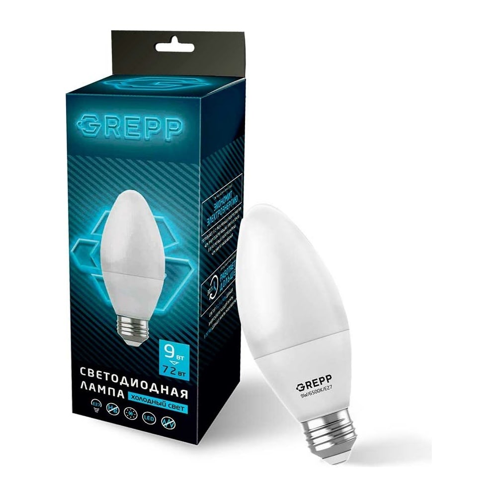 Светодиодная лампочка Ladina 9Вт/6500K/E27, свеча 165-005