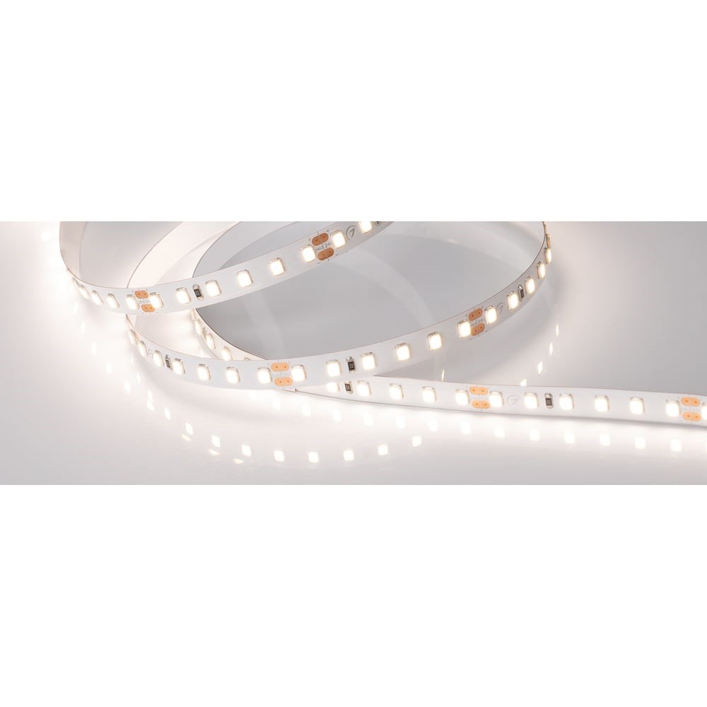 Гибкая лента PRO, светодиоды smd 2835, 120 шт/м (600шт на 5м), белая плата 8 мм, скотч 3М. Цвет ДНЕВНОЙ 3800-4200K. Питание 24V, мощность 14.4 Вт/м (72 Вт на 5м), угол 120°, цветопередача CRI>85. Размеры 5000х8x1.5мм. Мин.отрезок 50мм, 6 светодиодов.