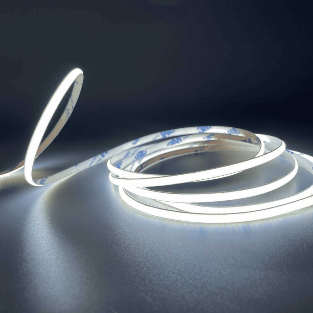 Светодиодная лента сплошная COB без точек 5 мм 5м станет отличным решением для создания стильного и яркого акцента различных зон дома. Белая самоклеящаяся лента для люстры придаст уюта вашей гардеробной, спальне или детской комнате. Светодиоды лед равномерно, без мерцания осветят ваш зал, создавая яркий холодный свет. Она гибкая и ее можно легко установить на любую стену, что позволяет создать уникальное освещение в любых помещениях. Неоновая led диодная короткая узкая лента 24 вольт обеспечивает мягкое и равномерное свечение без заметных точек света, создавая эффект неона. В машине она придаст современный стиль и поможет в освещении салона. Эта светодиодная подсветка 24В 6м потолочная идеальна для кухни: она может быть установлена под шкафами, полками и столом, а также подходит для дополнительного освещения рабочей зоны. Светящаяся диммируемая полоса лэд 5 метров хорошо смотрится за телевизором или зеркалом, добавляя современный акцент в гостиной или ванной комнате. Светодиодная декоративная полоса работает от напряжения 24V. Данный продукт 6 метров имеет самоклеющуюся основу, что упрощает процесс монтажа – просто снимите защитную пленку и закрепите на выбранной поверхности. Контурный дизайн идеально подходит для создания цветных световых эффектов вдоль плинтусов или под натяжным или навесным потолком. Если вы хотите создать уютное пространство с приятным холодным голубым цветом 6000К, эта подсветка станет лучшим выбором.