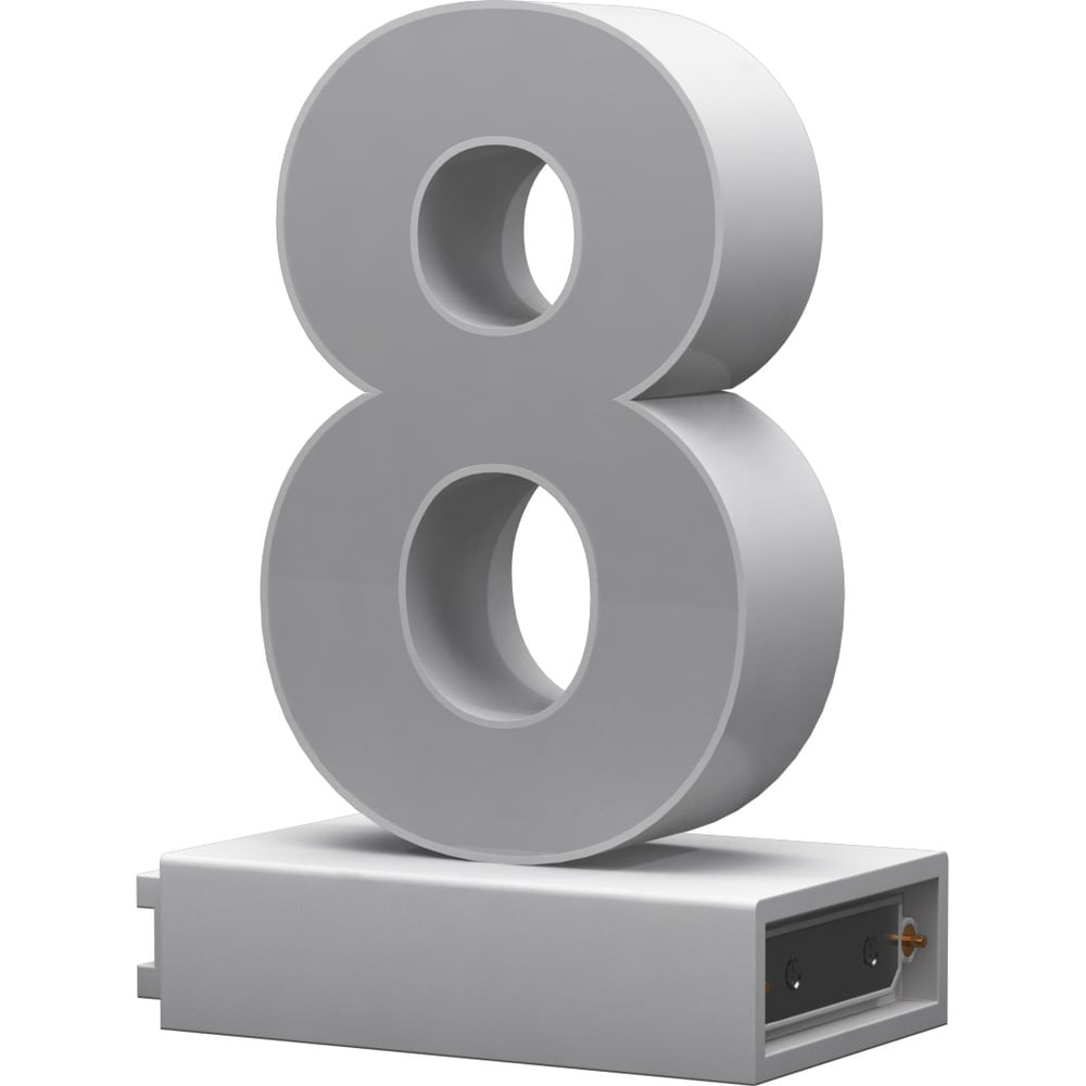 Светодиодная цифра 8 ABCMIX магнитное соединение, 100 мм -8-100-magnetic расположена на прямоугольном основании, имеющем магнитные разъемы с подпружиненными контактами, позволяющими собрать надпись буквально за пару секунд. Питание 12 В. Для подключения одного или нескольких световых элементов к сети необходимо докупить: Магнитный коннектор ABCMIX с заглушками для адаптера 12В -MCAS-12 (Код товара: 16347492) - 1 шт. Сетевой адаптер 12В с разъемом DC 5,5х2,1* - 1 шт (подбирается исходя из суммарной потребляемой мощности световой надписи. Среднее значение потребления электроэнергии светового элемента 2,5 Вт).
