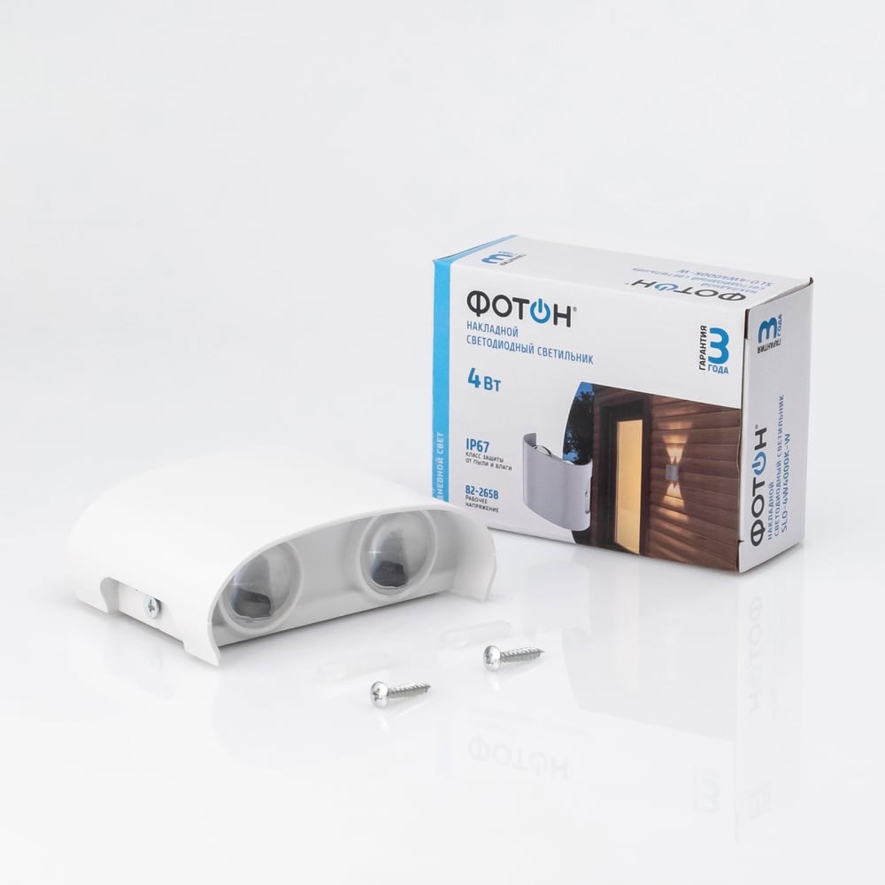 Светодиодный накладной светильник ФОТОН SLO- 4W4000K-W, белый 24742 относится к продуктовой категории "архитектурная подсветка" и предназначен для декоративного освещения домов, дач и других строений, в том числе в условиях нестабильного напряжения электросети. Обеспечивает стабильно ровный световой поток в диапазоне напряжений от 82 В до 265 В. Может использоваться в самых неблагоприятных погодных условиях, в том числе при снеге и дожде любой интенсивности. Технология термореактивной порошковой покраски обеспечивает устойчивость к истиранию, механическому и электрическому воздействию, УФ-излучению и перепадам температуры.