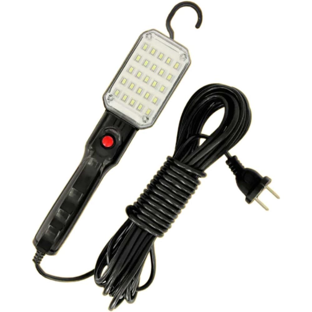 Внимание!!! Цвет корпуса случайный.Переносной светильник может использоваться для постоянного освещения, подсветки в труднодоступных местах, временного или аварийного освещения и т.п. Переноска имеет мягкий, гибкий силиконовый кабель (не замерзает на холоде) длиной 5 метров, со стандартной вилкой для розетки 220V.Данный светильник-переноска необходим при хозяйственно-строительных работах, ремонте и обслуживания автомобиля, при прочих работах в гараже и на даче, где необходимо точечное яркое освещение, и многих других работах.Корпус светильника выполнен из высококачественного пластика, обладающего повышенной устойчивостью к возгоранию. Для удобства, на задней стенке ручки установлен выключатель.В переноске установлено 25 мощных, высококачественных светодиодов, что гарантирует долгий срок службы (30000 часов).Экономичная переноска не нагревается, что повышает надёжность и безопасность переносного светильника.Сверху корпуса присутствует складной крюк для подвешивания переноски.Дополнительные технические характеристики:Напряжение:220-240 В 50/60 Г/цМатериал защитного плафона: металлМатериал рукояти с кнопкой включения: пластик