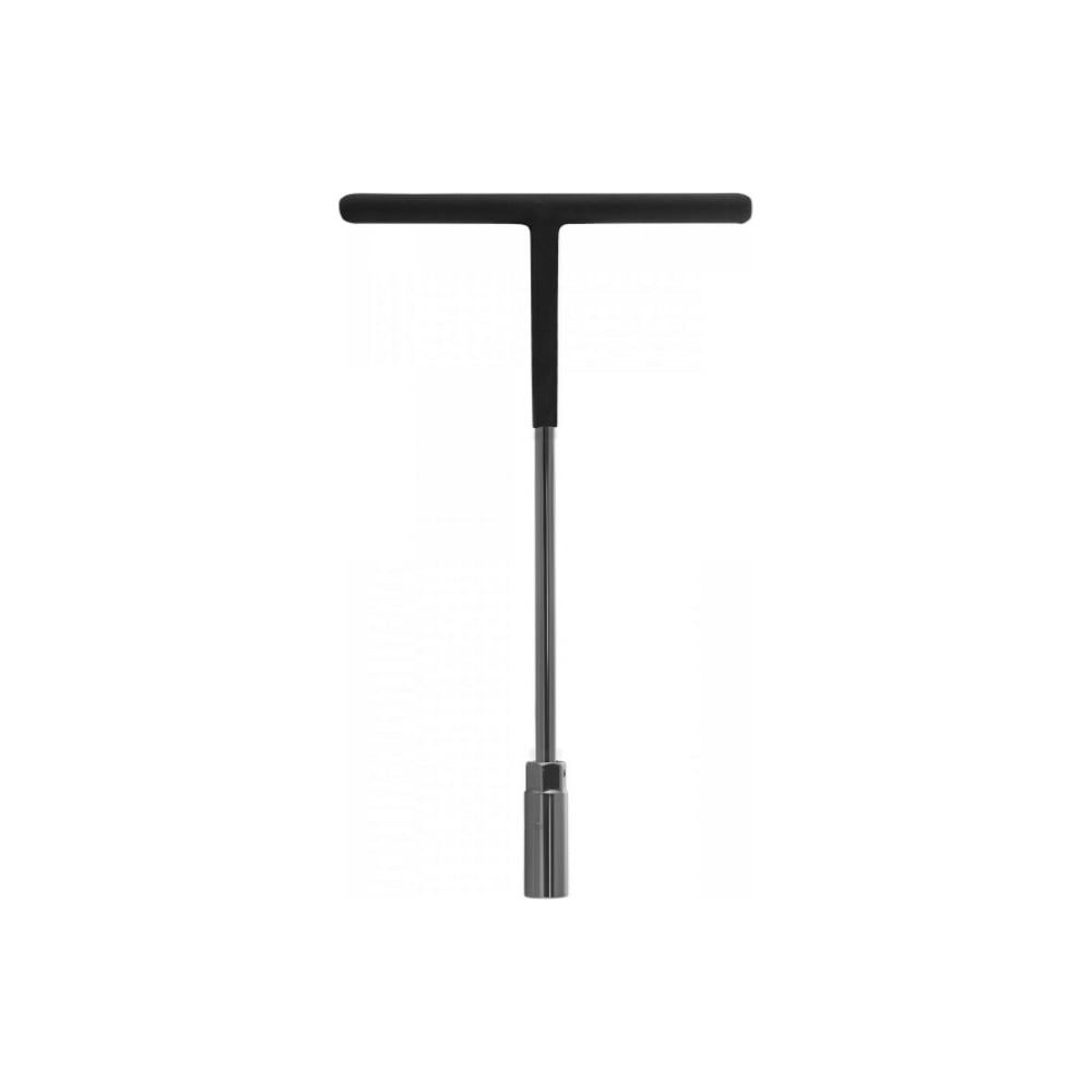 Свечной ключ 14 мм (Т-образный, 12-гранный) Ombra A90049 55640 выполнен из хромованадиевой стали с хромоникелевым покрытием стержня. Инструмент оснащен специальным захватом для надежного удержания свечи. Т-образная рукоятка закрыта ПВХ-чехлом, устойчивым к воздействию бензина и масел.