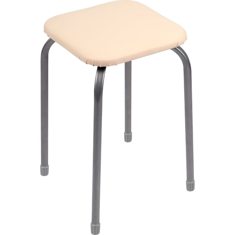 Табурет на четырех опорах с мягким сиденьем из винилискожи. Материал сиденья устойчивый к истиранию и лёгкий в чистке. Пластиковые колпачки на ножках защищают поверхность пола от царапин. Конструкция стула позволяет легко штабелировать несколько изделий.