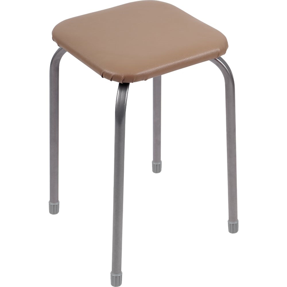 Табурет на четырех опорах с мягким сиденьем из винилискожи. Материал сиденья устойчивый к истиранию и лёгкий в чистке. Пластиковые колпачки на ножках защищают поверхность пола от царапин. Конструкция стула позволяет легко штабелировать несколько изделий.