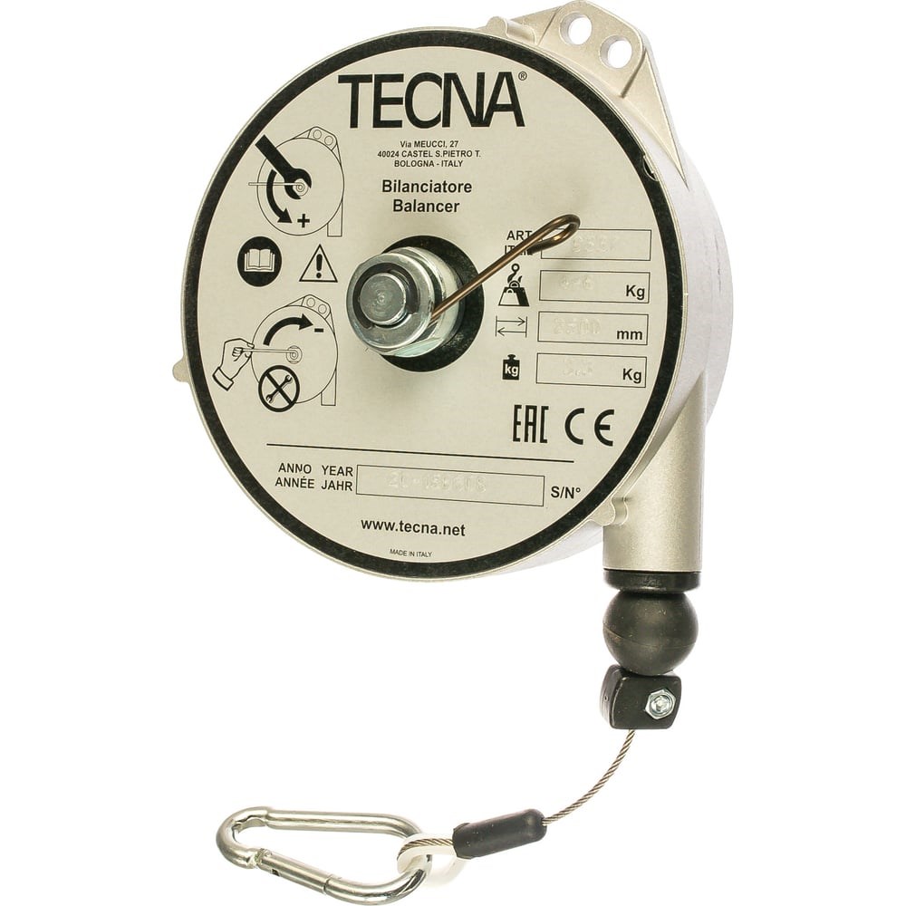 Таль-балансир TECNA 9337 100314722 широко эксплуатируется в гараже, автомастерской или на СТО. Модель представляет собой прочную и надежную конструкцию из алюминия, которая оснащается стальным тросом длиной 2.5 метра. Устройство используется в качестве противовеса к рабочему инструменту. Приспособление имеет небольшие габариты и вес и не доставляет сложностей в хранении.