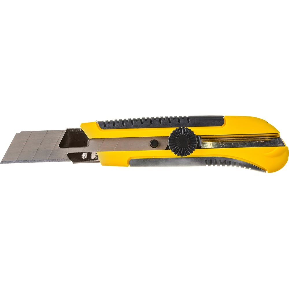 Размер: 25 ммМатериал: сталь, пластмассаСпециальный винтовой фиксатор служит для закрепления лезвия в корпусеЛезвие состоит из сегментовУпаковка: блистер