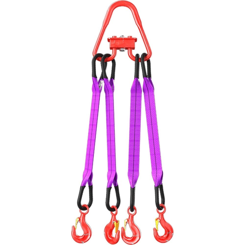 Строп текстильный четырехветвевой 4СТ изготавливается из плоской полиэстеровой ленты с использованием овального звена типа Ов (по умолчанию). Имеются руководящие документы РД 10-33-93 (с изменениями в РД 10-231-98), РД 24-СЗК-01-01, а также целый ряд других, включая международные. Текстильные одноветвевые стропы 1СТ, из которых состоит строп 4СТ, ряд производителей, в том числе и зарубежных, маркируют различным цветом в полной зависимости от ширины и грузоподъемности изделий. Стропы 4СТ это по сути четыре стропа 1СТ. Они производятся из полиэстеровой плоской ленты с петлевыми окончаниями (огонами), которые формируются путем сшивки нитей с использованием прямых швов (в некоторых случаях волнообразных и зигзагообразных). Предлагаемые стропы 4СТ имеют маркировочную бирку с обозначением информации, которая должна быть указана в соответствии с РД 24-СЗК-01-01. Основное назначение строп 4СТ – осуществление широкого спектра такелажных работ на объектах различного функционального предназначения при температуре рабочей среды в диапазоне от – 60 °С до + 100 °С. Преимущества Основные достоинства четырехветвевых текстильных строп 4СТ: • универсальность из-за широкой вариативности используемых решений; • небольшая масса по сравнению со стальными аналогами; • высокая степень устойчивости к широкому спектру агрессивных факторов окружающей среды. Внимание, изображение товара может отличаться от реального! Верные параметры указаны в технических характеристиках товара.