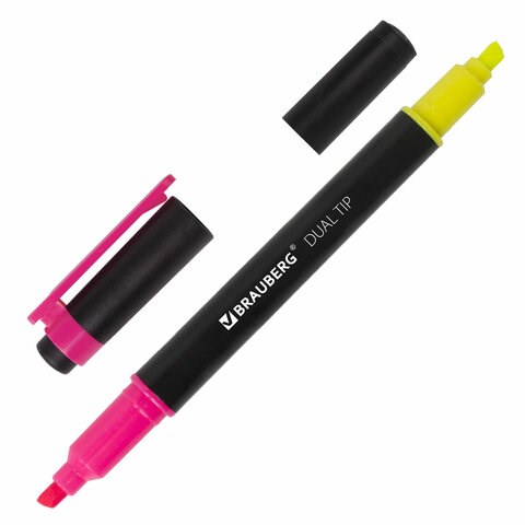 Текстовыделитель двусторонний BRAUBERG, ЖЕЛТЫЙ/РОЗОВЫЙ, линия 1-4 мм, 150840