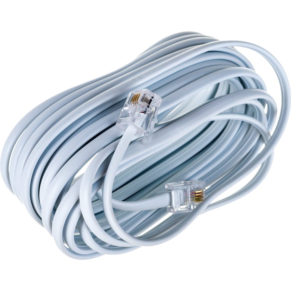Телефонный шнур-удлинитель REXANT предназначен для подключения телефонных аппаратов, факсов, модемов, ADSL сплиттеров и других устройств с разъемами типа RJ-11 (евроджек). Удлинитель представляет собой телефонный кабель, на концах которого располагаются опрессованные разъемы RJ-11 (6P4C). Используется для удлинения абонентской телефонной линии, когда подключаемое устройство находится в отдалении от стационарной розетки.Изоляция жил и общая оболочка изготовлена из ПВХ. Контакты разъемов покрыты слоем золота по технологии вакуумного напыления, обеспечивающие лучшую пропускную способность сигнала. Рабочая температура шнура –20...+50 ℃. Длина провода составляет 5 метров, цвет белый.Такой шнур является быстрым, недорогим и удобным решением при подключении соответствующего оборудования к стационарной розетке.