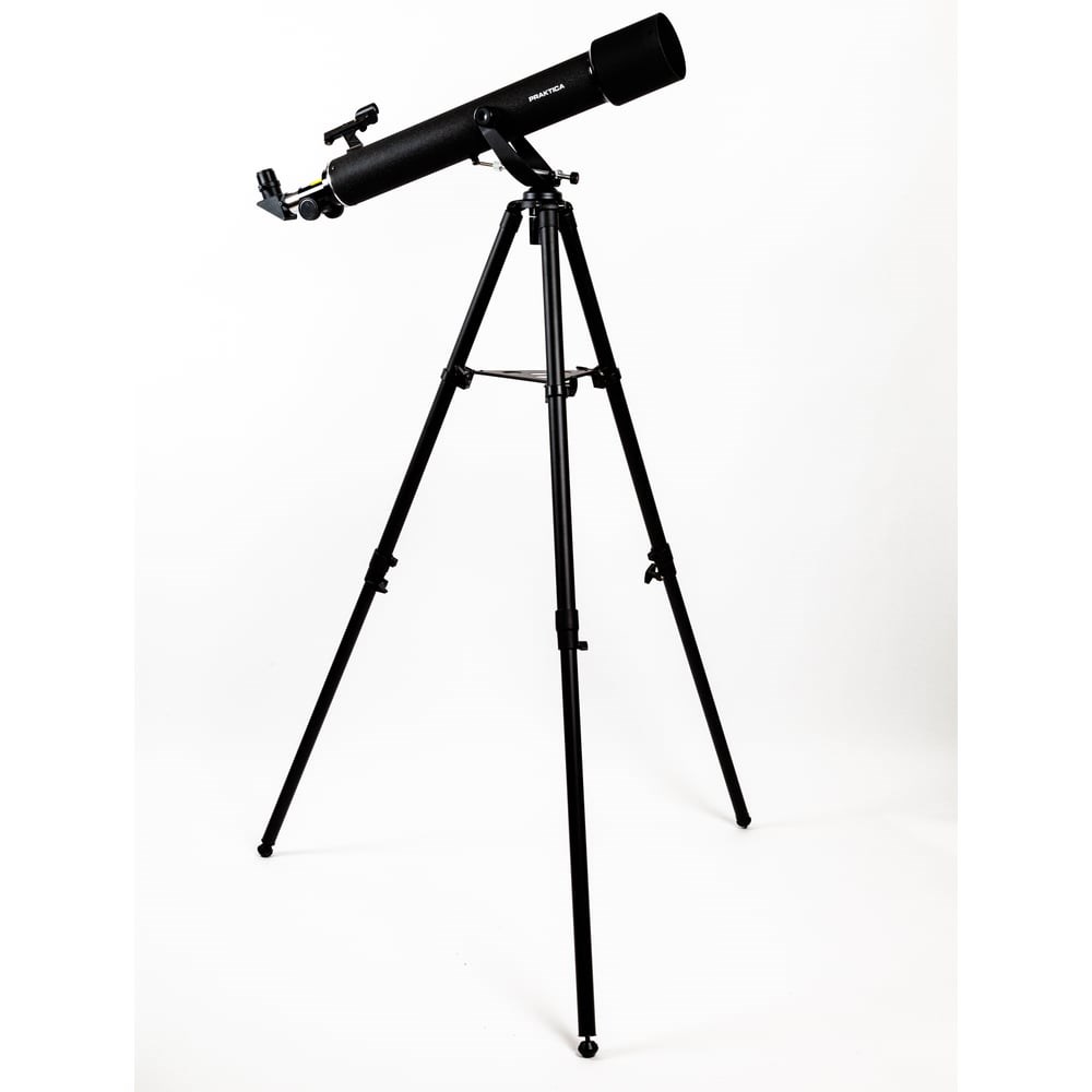Телескоп Praktica Altair 80/720AZ, искатель red dot, адаптер для смартфона, стальная тренога, черный 91180720 прекрасно подойдет тем, кто хочет прикоснуться к загадкам ночного неба, изучить особенности астрономических объектов близкого и дальнего космоса. Это классический среднеразмерный телескоп для начинающих любителей астрономии. Он мобилен, легко собирается и подходит для наблюдений Луны, планет, а также скоплений звезд и ярких туманностей. Двухлинзовый объектив и окуляры имеют зеленое и синее просветление.