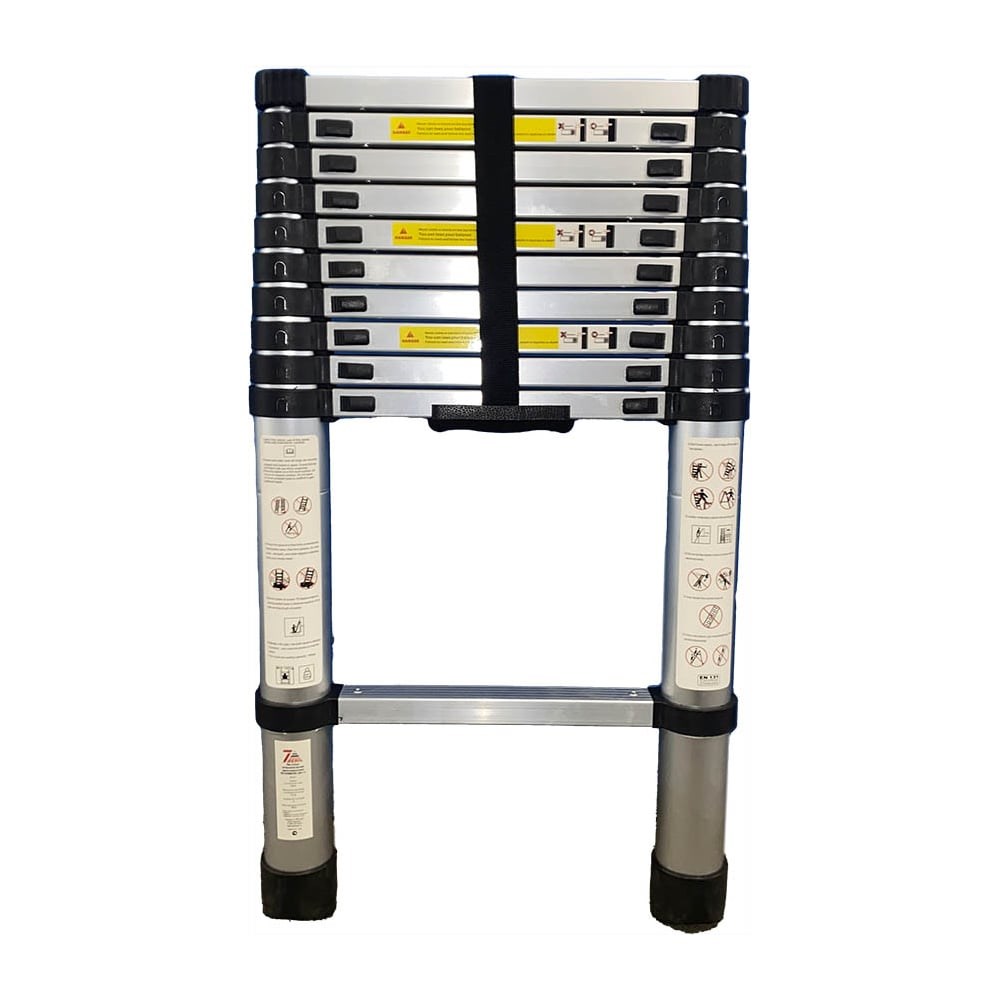 Телескопическая лестница SevenBerg QH-11 3,2 м. очень удобна для транспортировки. Она имеет минимальный размер в сложенном состоянии. Лестницу легко можно разложить на нужную длину и также легко сложить. Для этого потребуется только нажать на 2-а лепестка на ступенях. Так как модель состоит из нескольких секций, она имеет больший прогиб, чем односекционные приставные лестницы. Поэтому её не используют для работ, связанных с повышенной нагрузкой или монтажных работах. При выборе это нужно учитывать. В остальном телескопическая лестница очень привлекательна для работ дома, на участке, для замены лампочек и других бытовых работ.