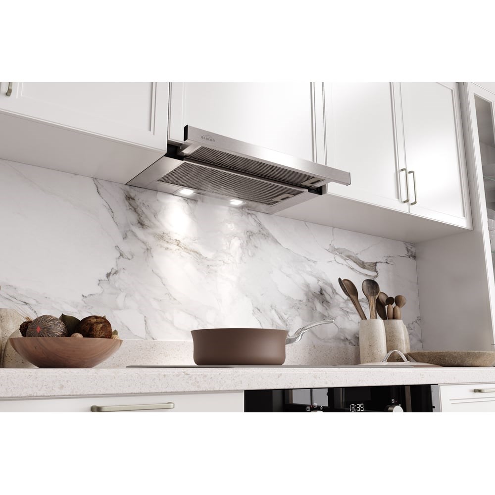 Кухонная вытяжка Slide от Elikor предназначена для встраивания в кухонный шкаф. Эта телескопическая вытяжка оснащена выдвижной панелью, обеспечивающей быстрое включение и выключение устройства. Производительность вытяжки Slide - 430 м3/ч позволяет очистить воздух в помещении до 16 м2. Вытяжка работает в режиме отвода и рециркуляции.