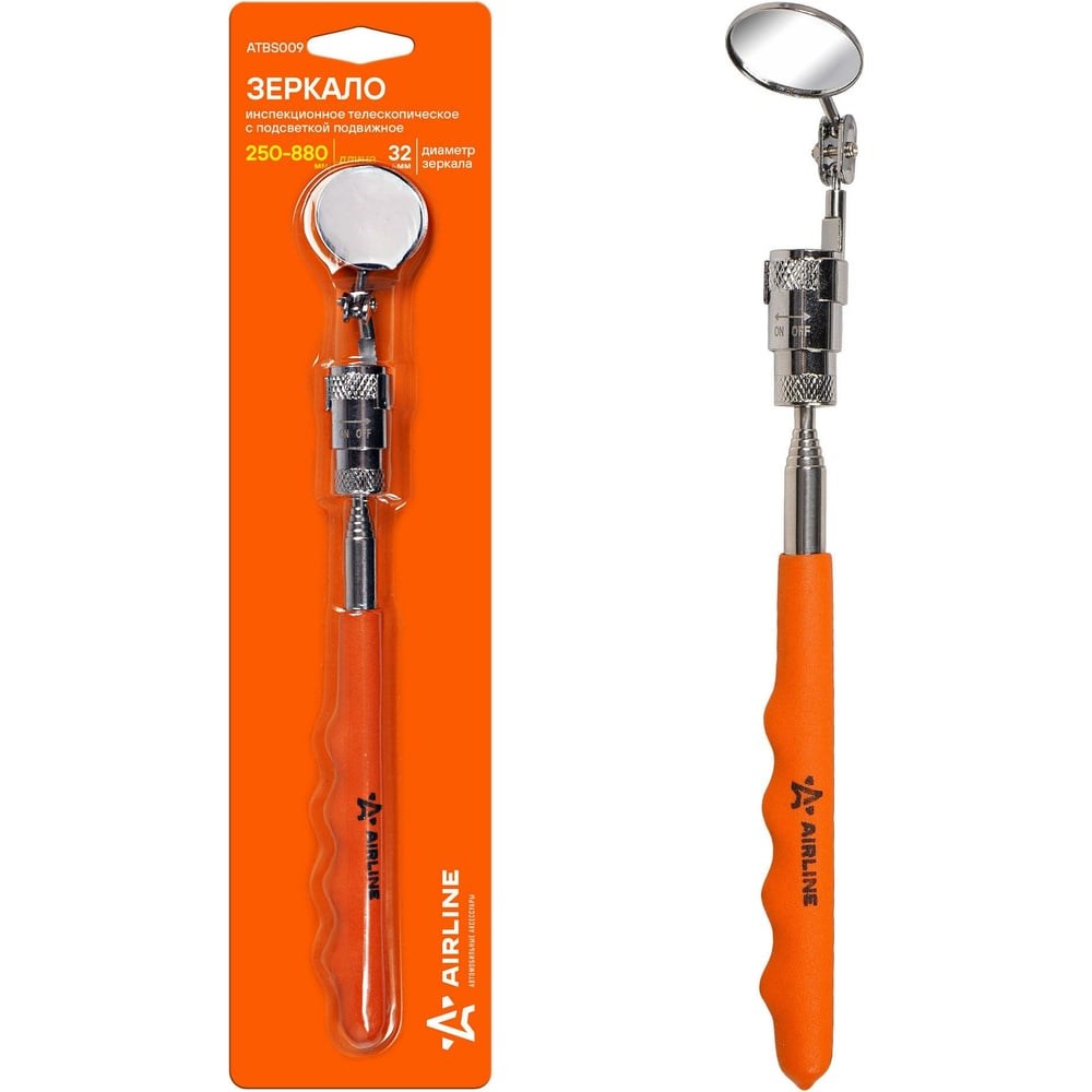 Телескопическое инспекционное зеркало AIRLINE с подсветкой, подвижное, d=32 мм, L=250-880 мм ATBS009 предназначено для осмотра узлов и агрегатов, расположенных в труднодоступных местах. Может применяться в бытовой и профессиональной сферах. Изделие выполнено из качественной стали и отличается прочностью и надежностью. Эргономичная телескопическая рукоятка обеспечивает комфортную эксплуатацию. Яркая подсветка и подвижный элемент зеркала облегчают работу с инструментом.