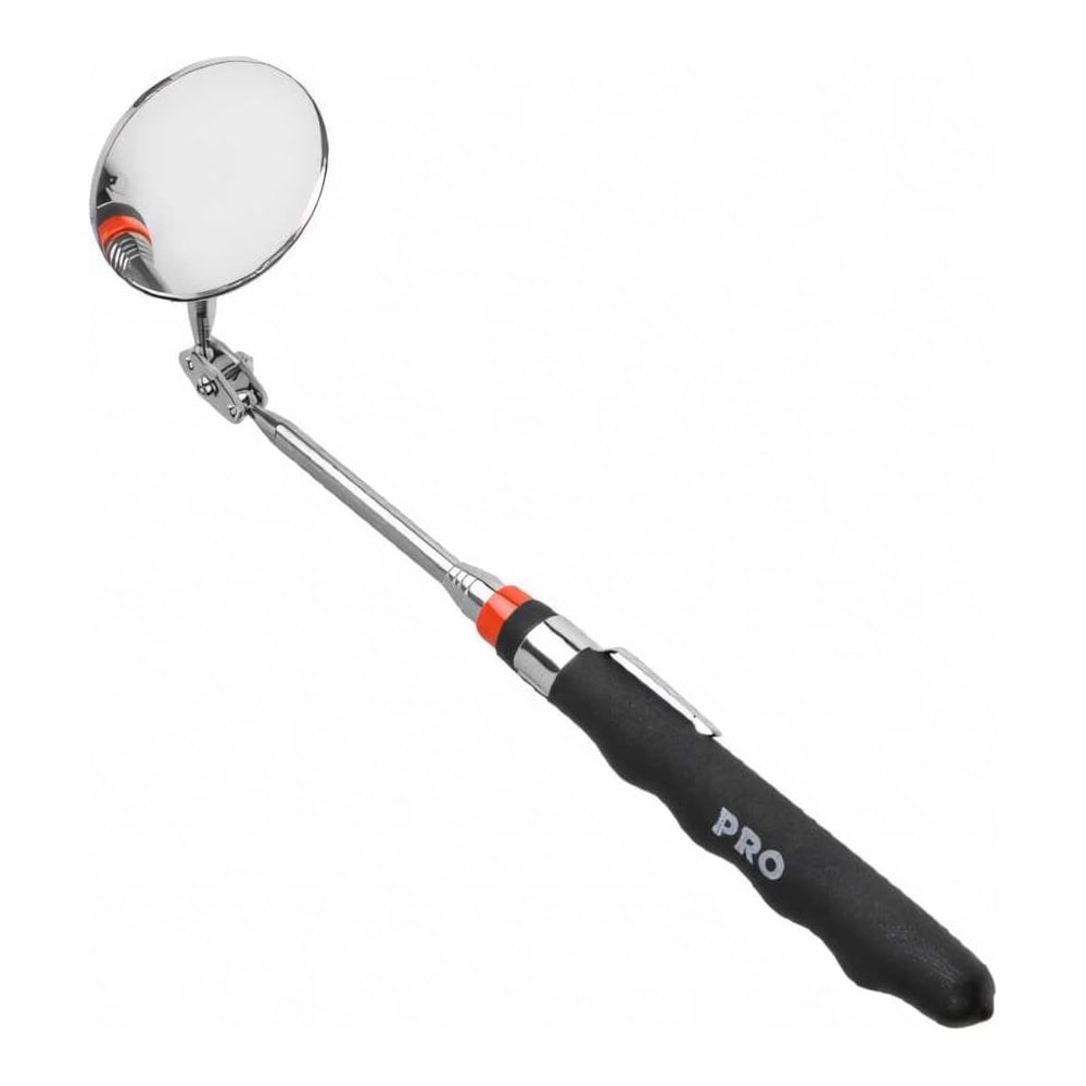 Зеркало телескопическое поворотное предназначено для осмотра и исследования труднодоступных мест. Ручка выполнена из нержавеющей стали с хромированием. Также зеркало оснащено карманной клипсой, что позволит держать его под рукой. Длина ручки может варьироваться в пределах от 240 до 700 мм.