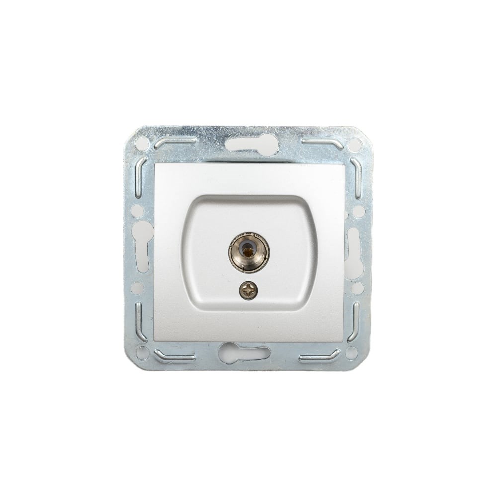 Одноместная TV-розетка Volsten V01-15-T11-M Magenta Argento, 10025 используется для создания точки доступа к телевизионному сигналу. Корпус розетки изготовлен из глянцевого поликарбоната, который обладает устойчивостью к механическим воздействиям и защищает место соединения с вилкой от внешних помех. Это позволяет транслировать аудио- и видео сигнал в наилучшем качестве. Кроме того, розетка значительно улучшает внешний вид помещения благодаря серебристому цвету корпуса.