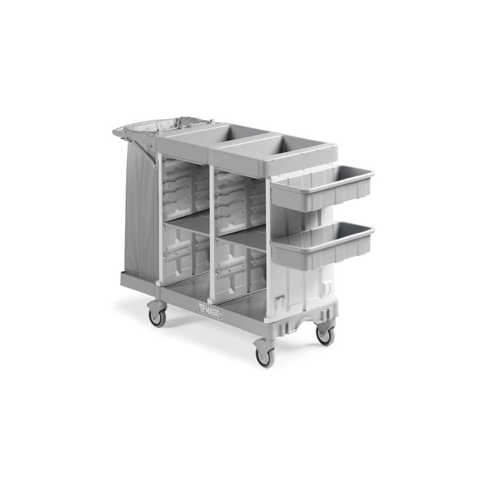 Тележка для отелей TTS серии MAGIC HOTEL 845B MH845B0T0VV0 пригодится при перевозке чистого белья, сбора грязного белья в гостиницах, отелях, хостелах, санаториях, больницах. Изготовлена из прочного пластика, благодаря чему не подвержена к коррозии. Надежная конструкция колес обеспечивает устойчивость при транспортировке. Имеет 40 мест для белья и умывальных принадлежностей, что позволяет обслуживать до 10 стандартных номеров.