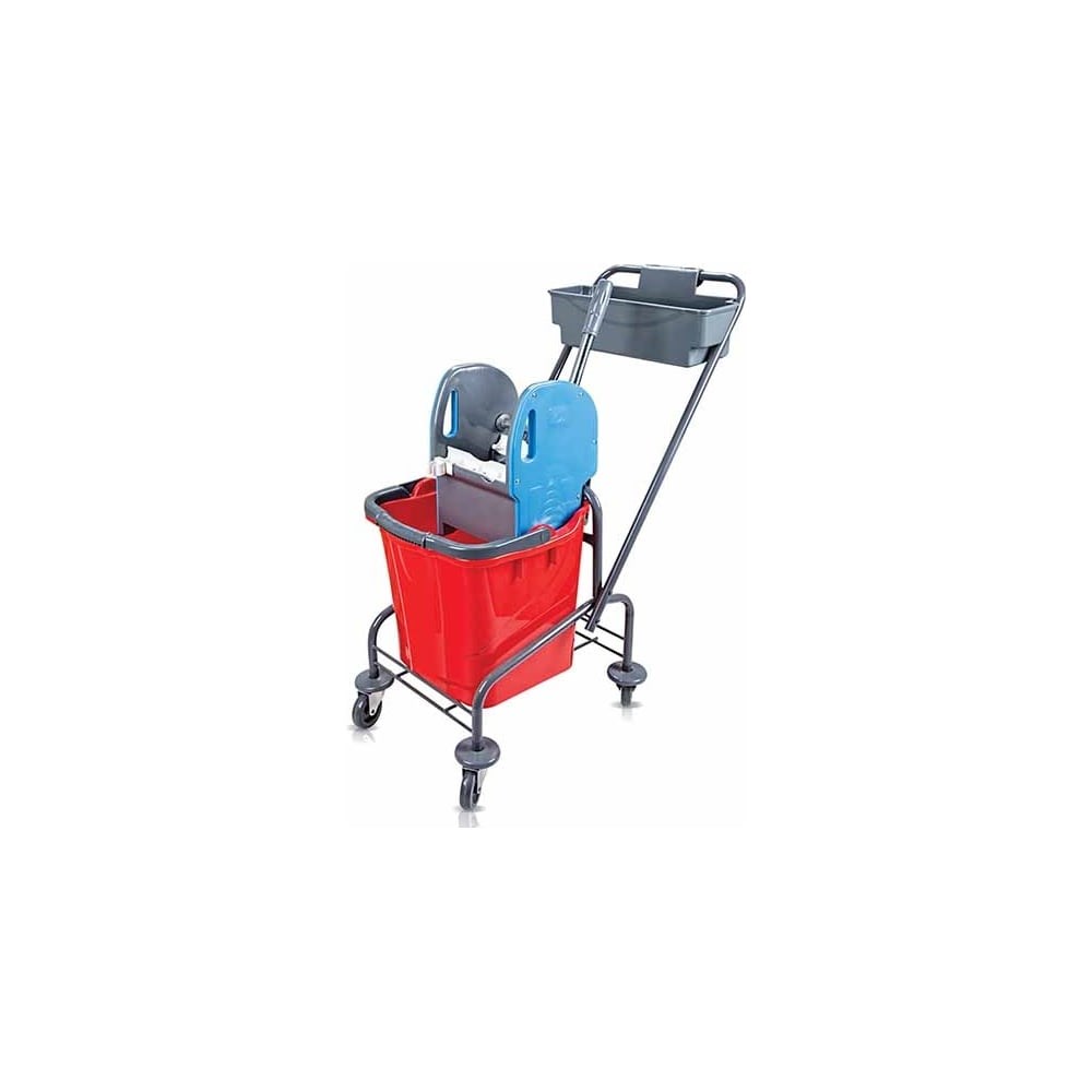 Тележка уборочная одноведерная с отжимом. Уборочная одноведерная тележка с отжимом 1х25л понадобится всем тем, кто стремится найти хорошее решение для клининга помещений – офисов, отелей, ресторанов, производственных цехов, общежитий и т.д. Колесики выполнены из качественного материала и обеспечивают равномерность, плавность, стабильность и легкость хода. Изделие отличается эффективностью и качеством исполнения.